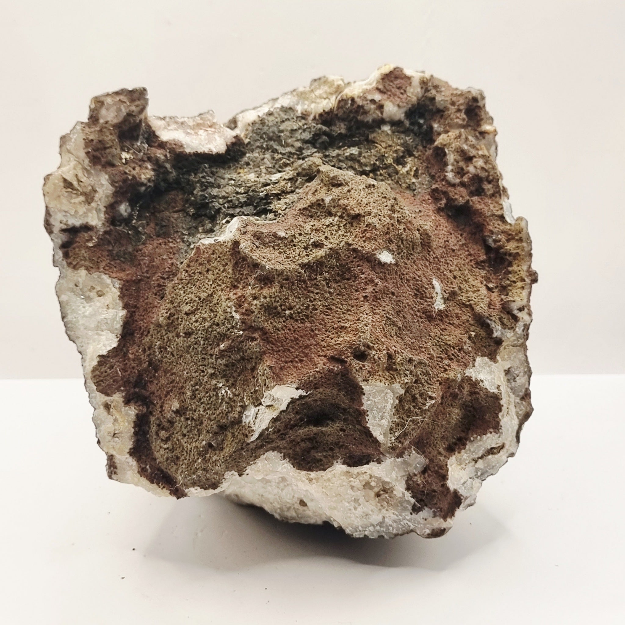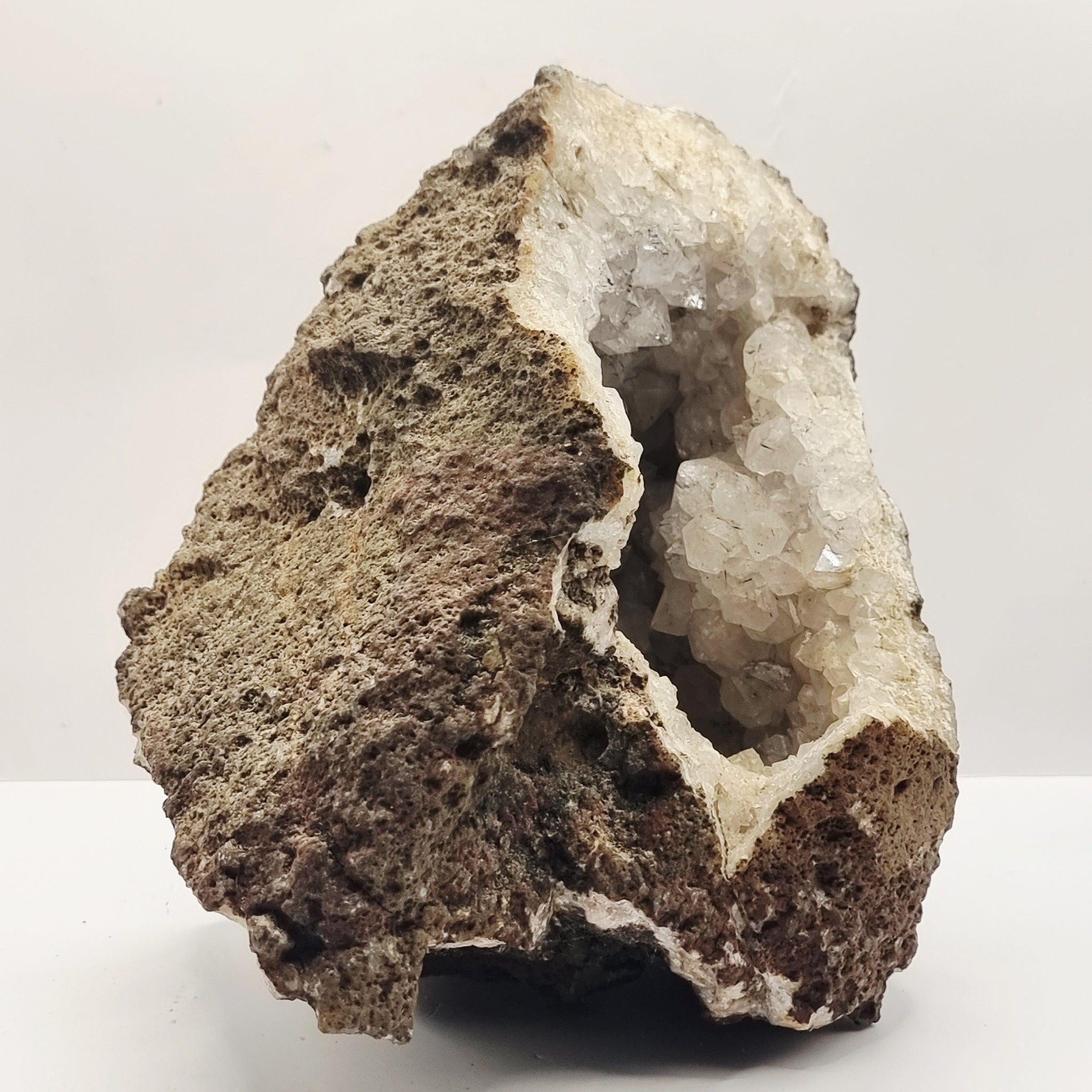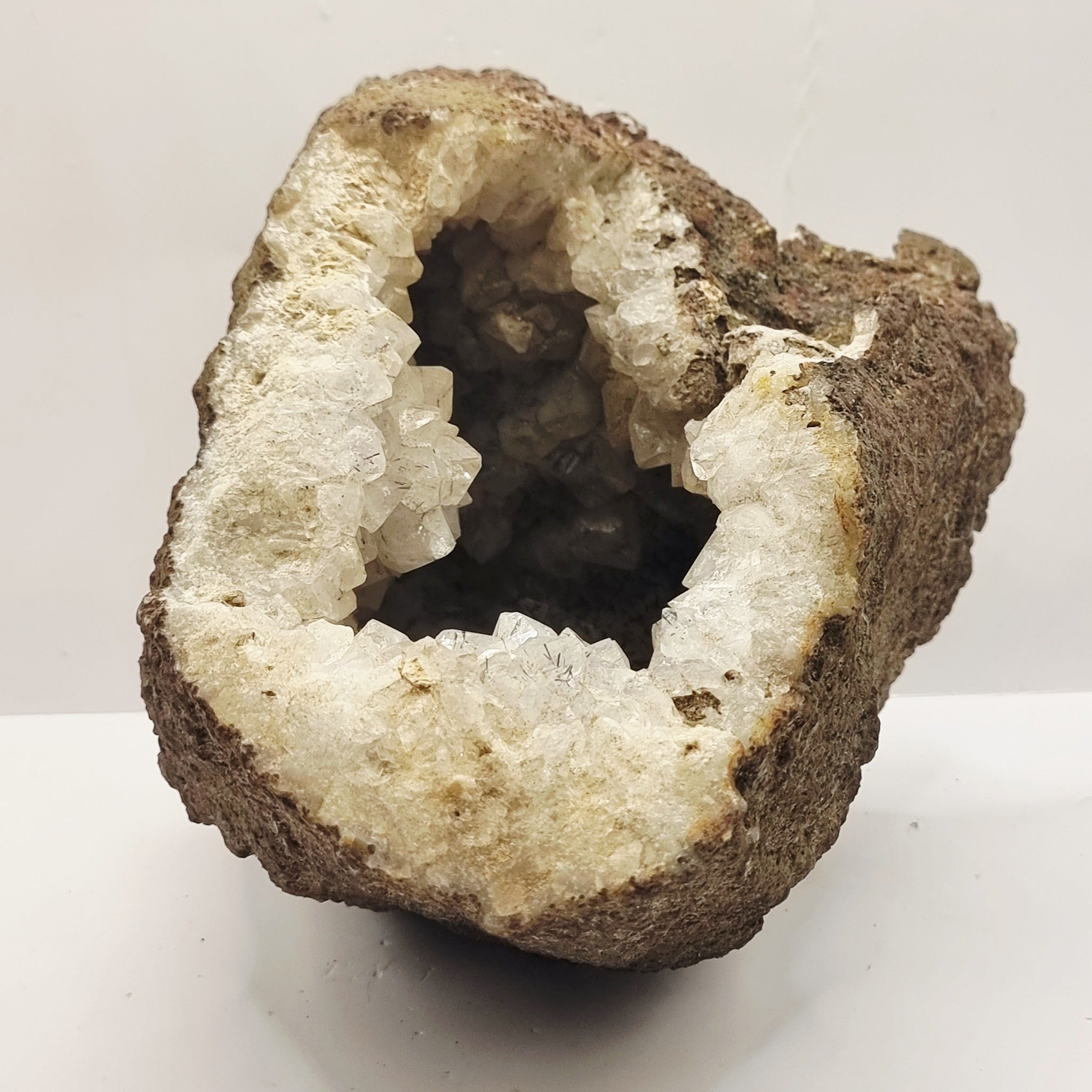 4.8 kilograms Rock Crystal Quartz Geode Healing Stone. This geode looks to me to have clear crystals to the inside with black flaws to the larger pieces. This healing crystal geode is an ideal size for a tea light to be placed inside. Giving the beauty of the crystals reflecting on the flame. Weighs in at 4.8kg.