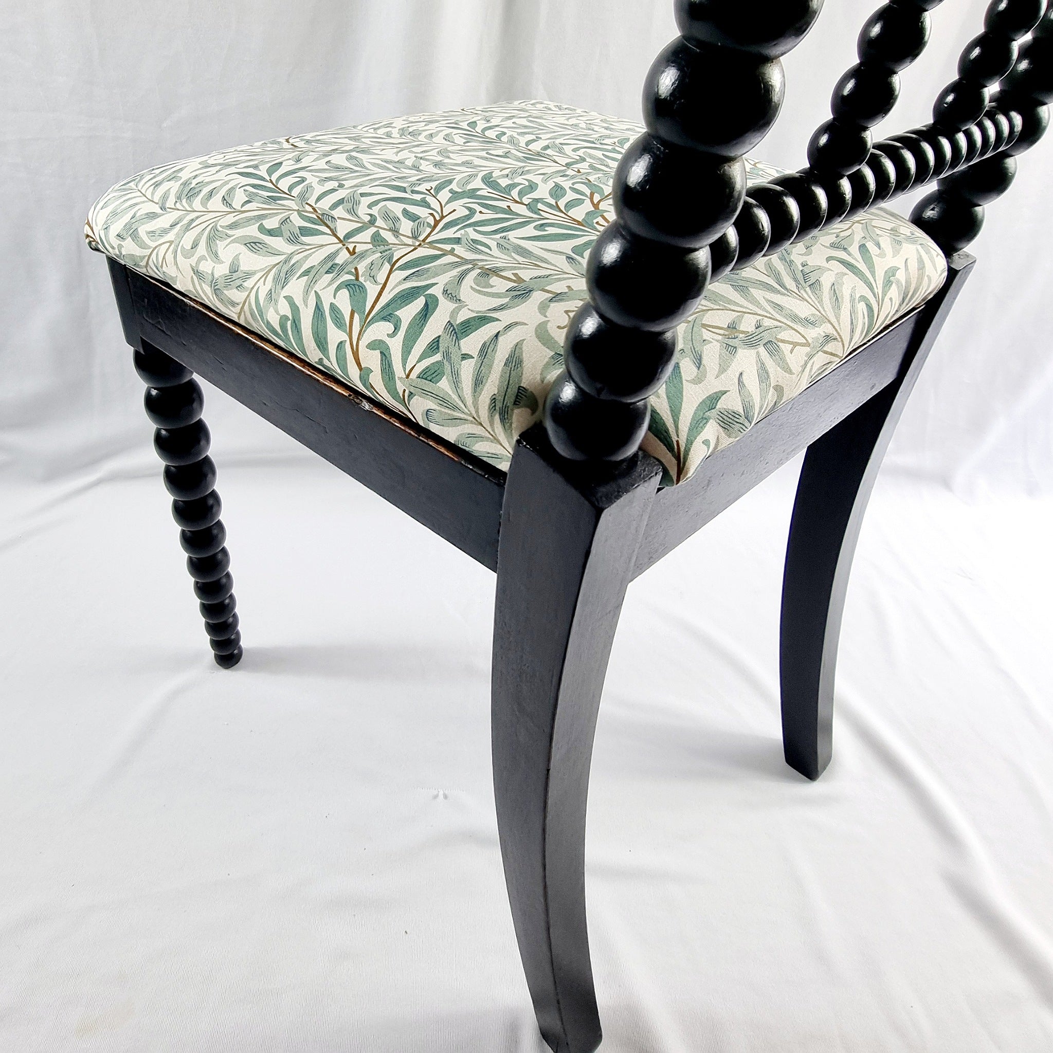 Antique 19th Century Ebony Bobbin Chair with William Morris Fabric