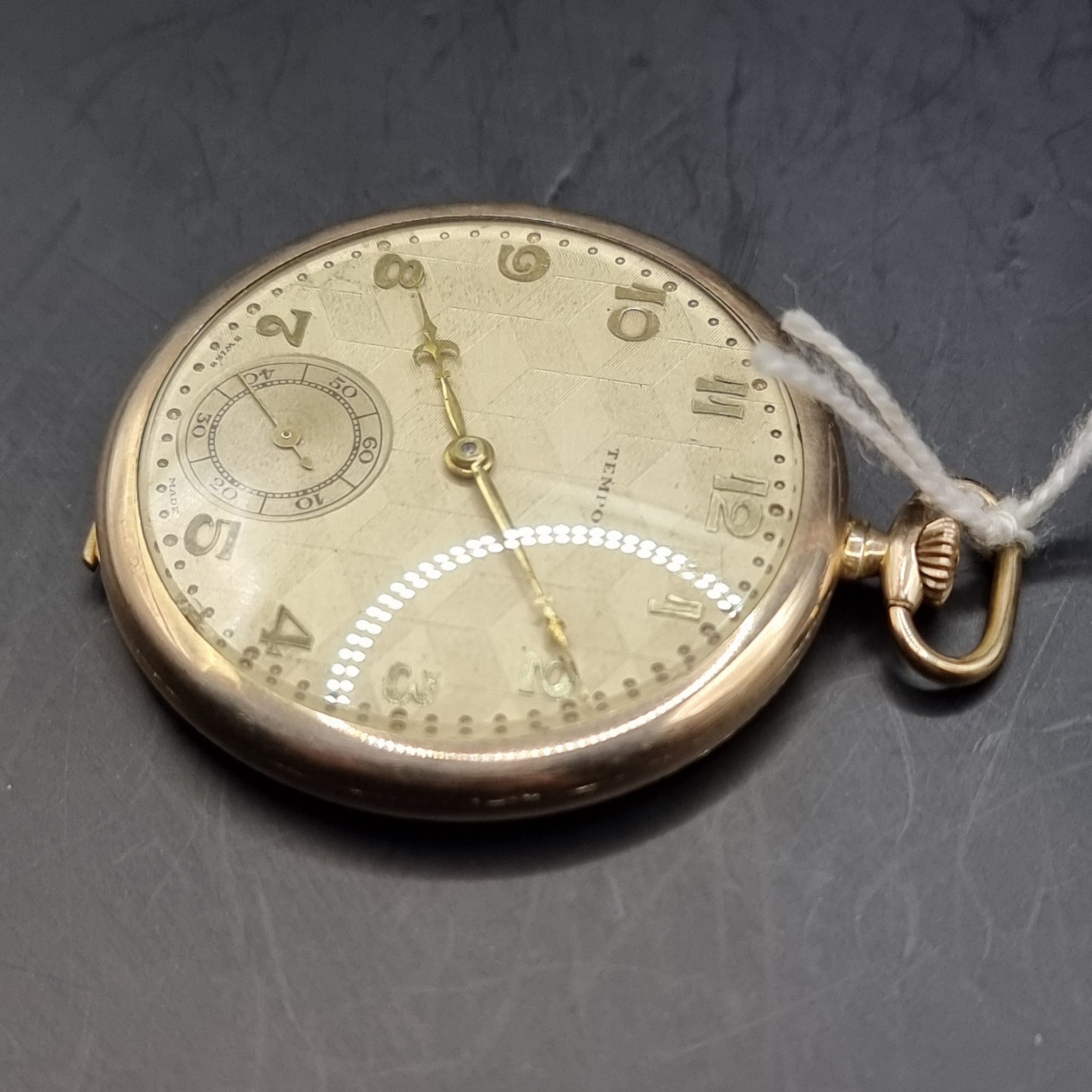 Antique Art Deco Gold Plated Tempo Fob Pocket Watch 15 Jewels