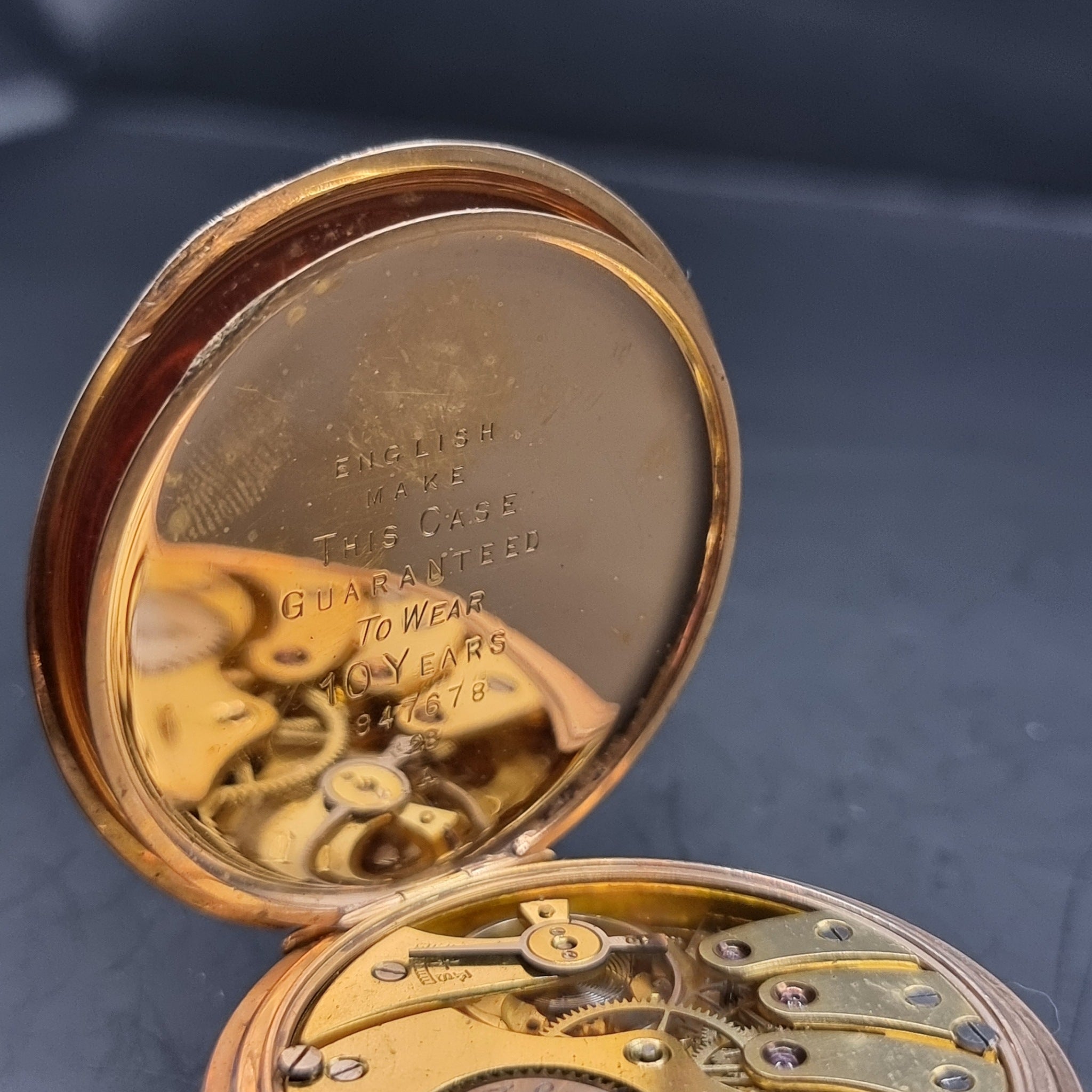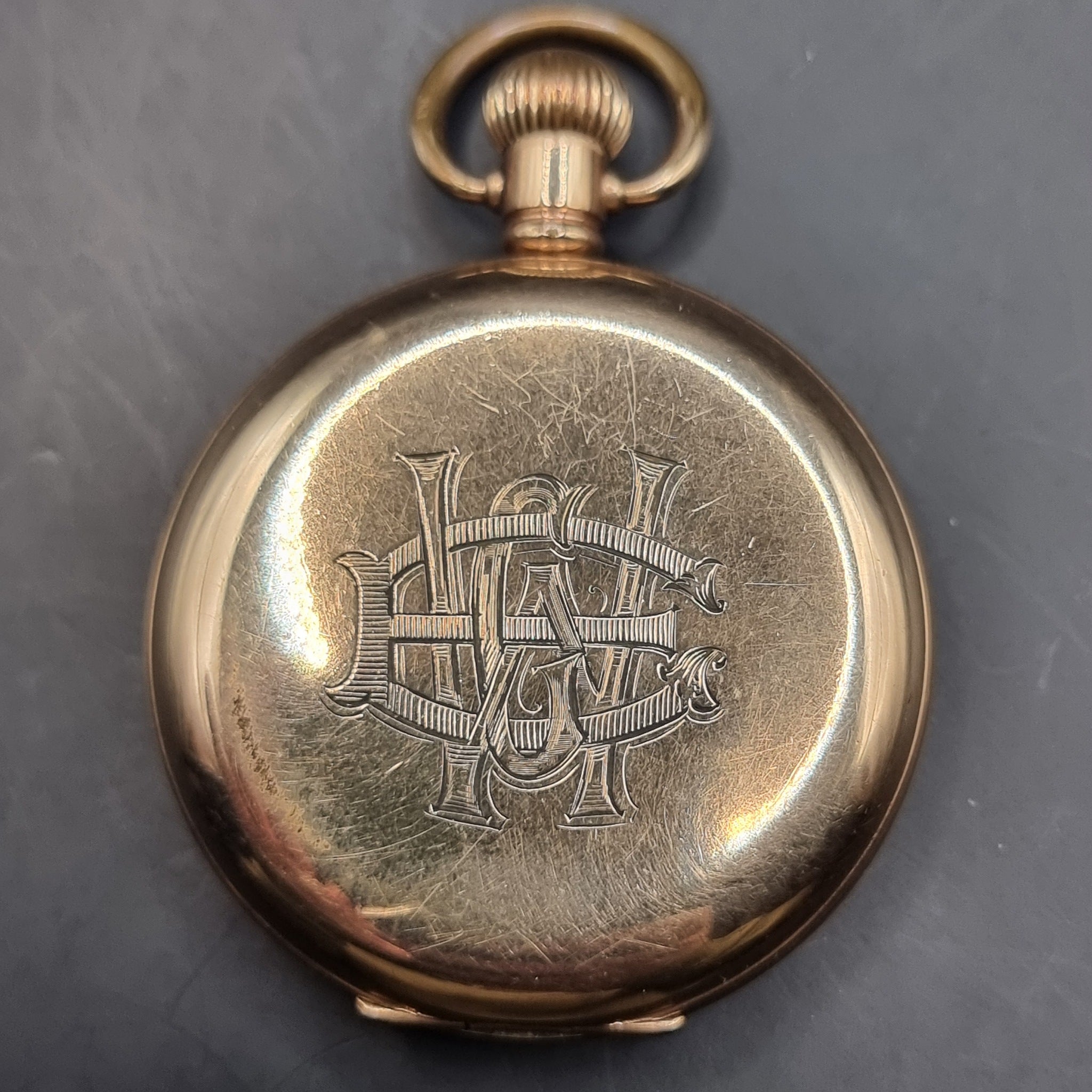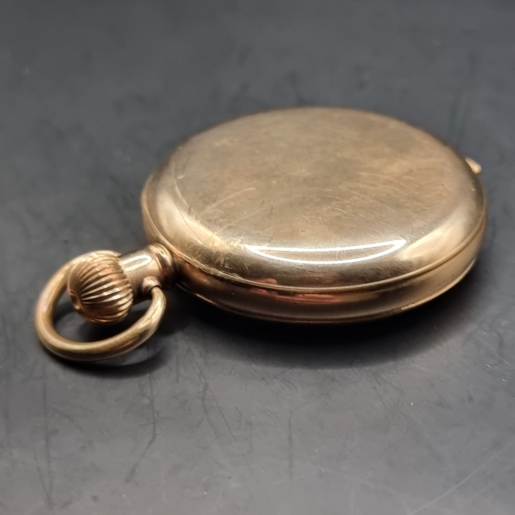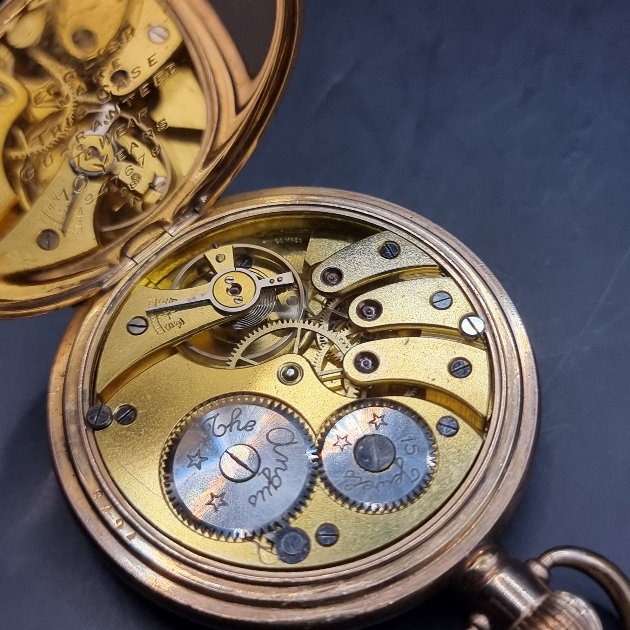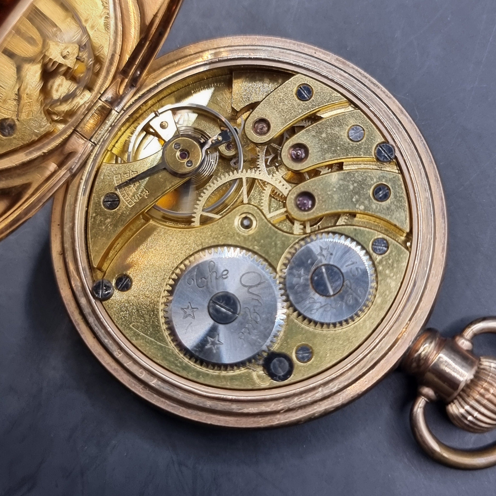 Antique Full Hunter Gold Plated Fob Pocket Watch The Angus Swiss Made.