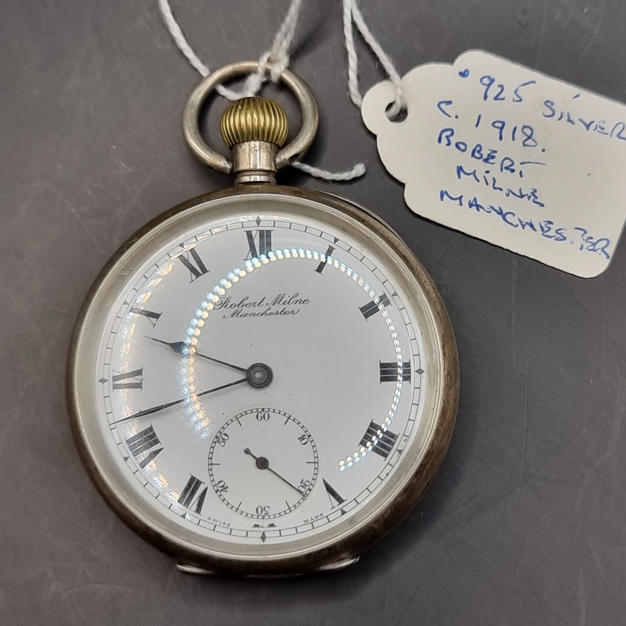 Antique Silver Fob Pocket Watch by Robert Milne, Manchester 1918