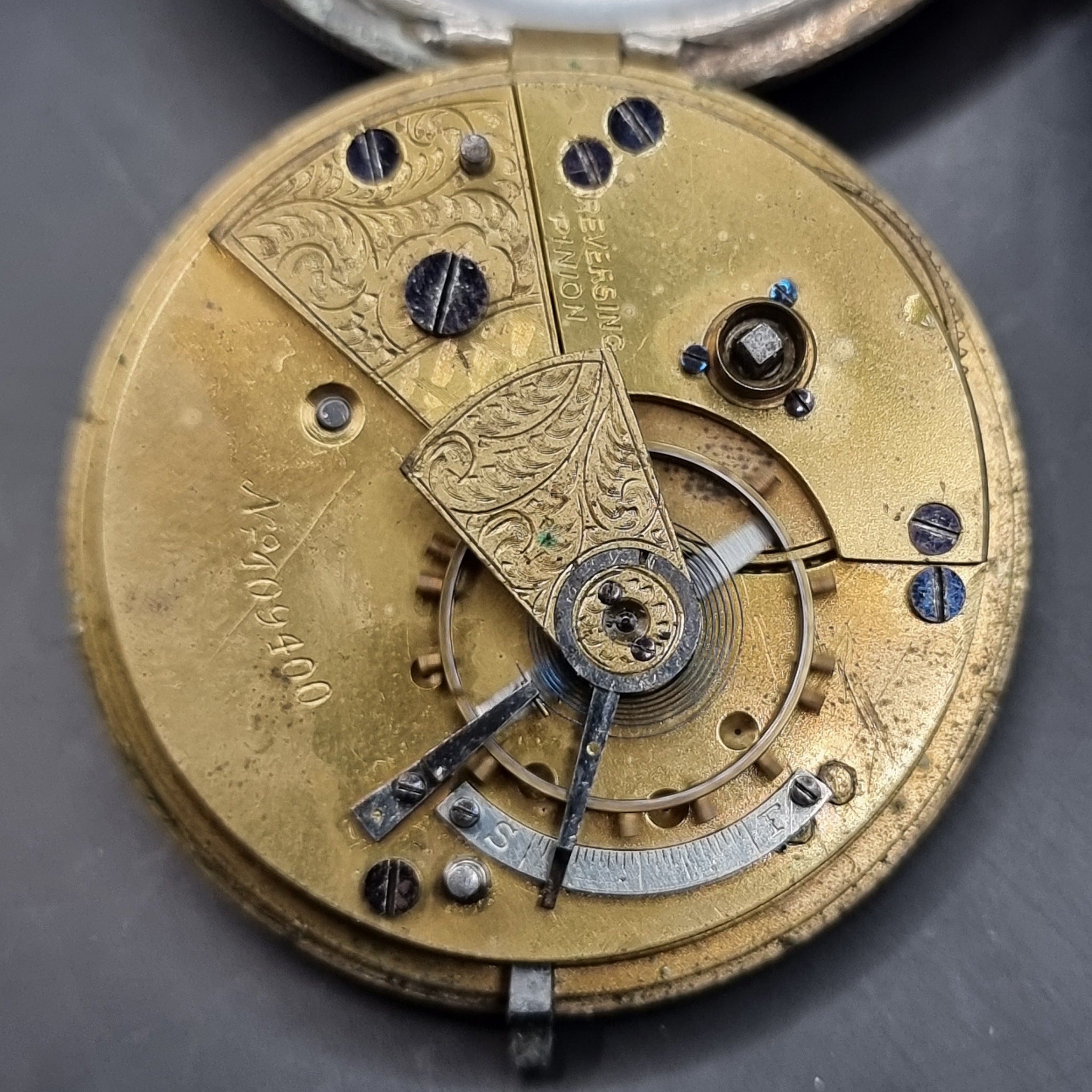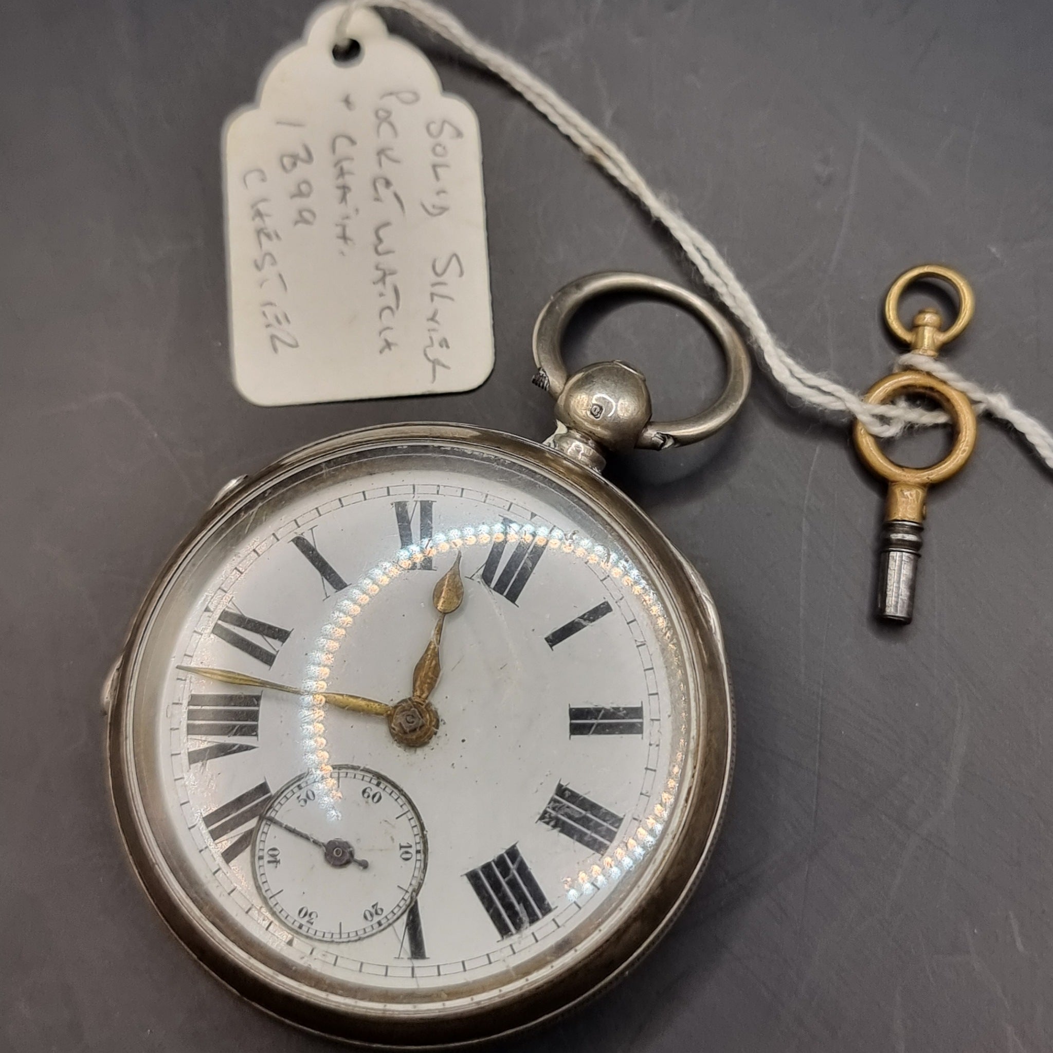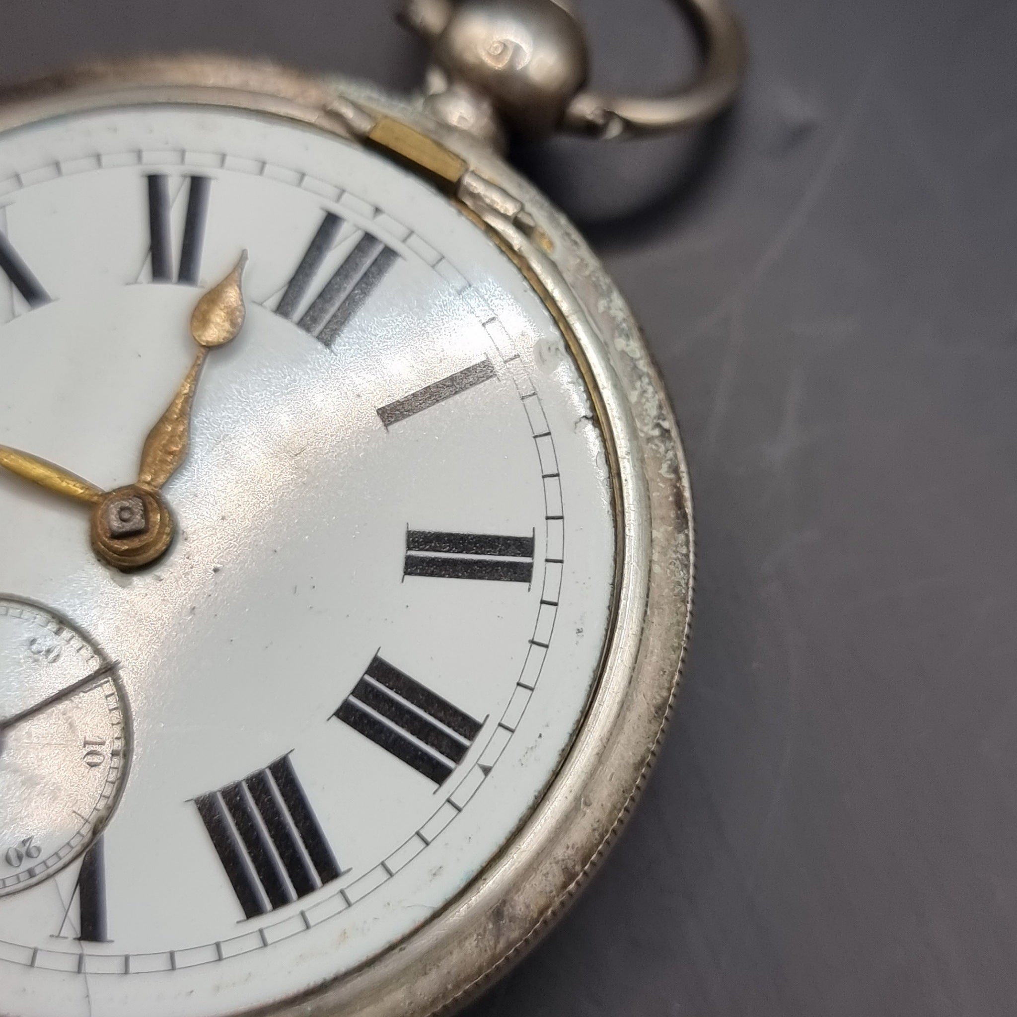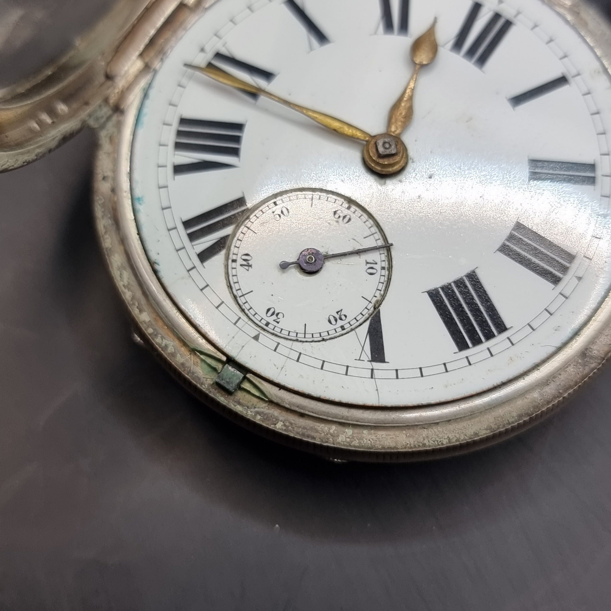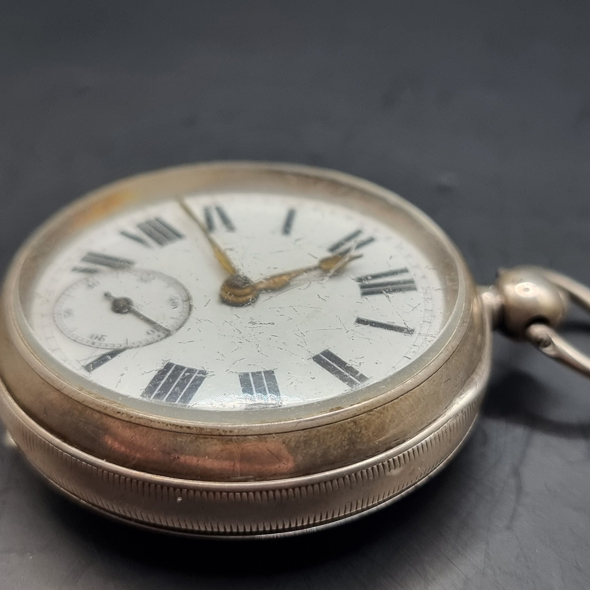 Antique Victorian Silver Fob Pocket Watch Chester 1899. Well loved victorian pocket watch with enamel face. Movement is reversing pinion, the term refers to the screwed 'safety' centre pinion. The pocket watch has the hallmarks for Chester dated 1899 made by The Lancashire Watch Co Ltd (Thomas Peter Hewitt). Key wind watch, key is included. The watch is in working order, but has been well used with scratches over the glass. Minor dents and scratches to the case. And the age related wear with the rubbing of the silver. Key winds fine. Weighs 130g.
