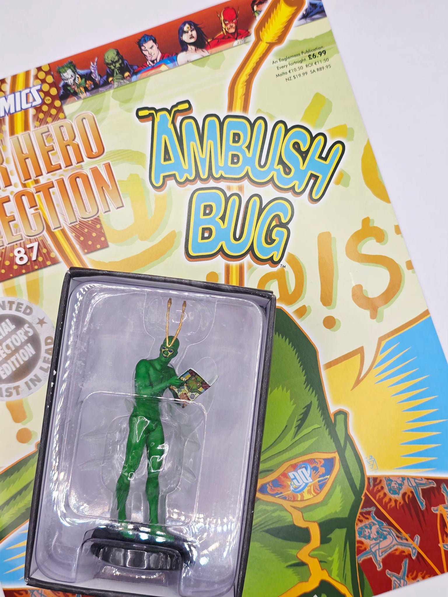 Ambush Bug figurine n° 87 from the DC Comic Super Hero Collection series. This collection figurine is made by Eaglemoss under license DC Comics. This statue is taken from DC Comics comics heroes.