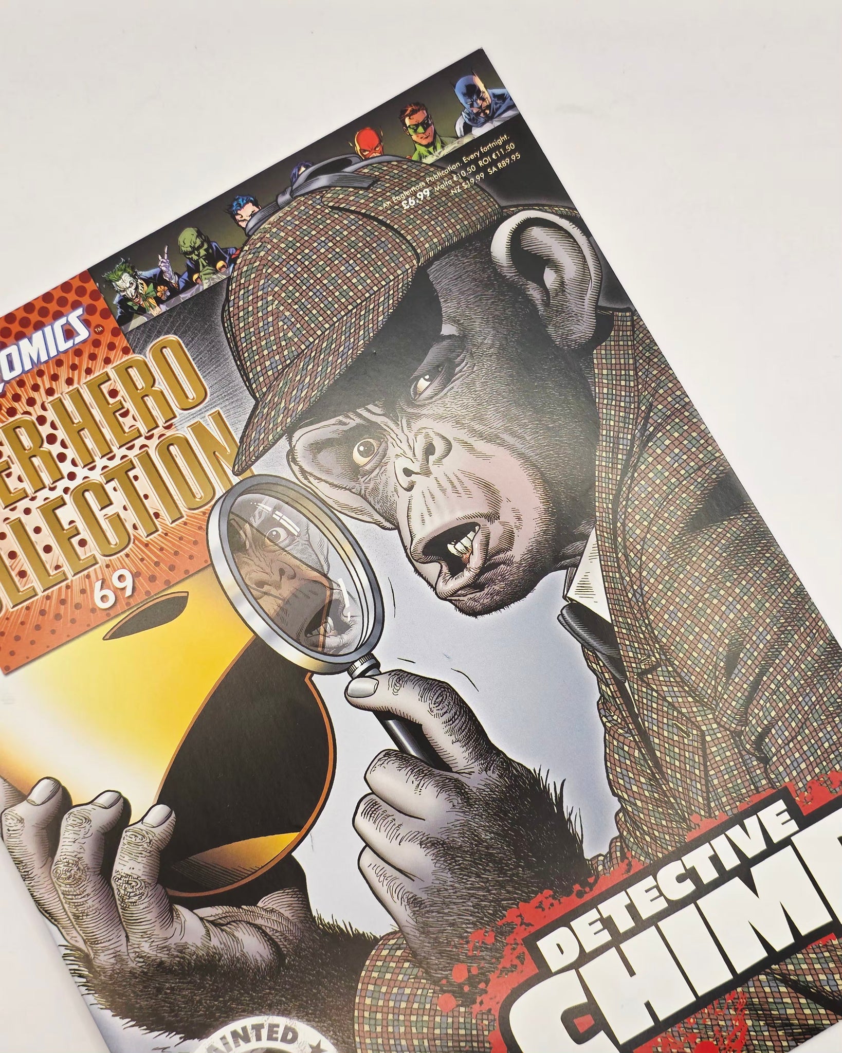 Detective Chimp figurine n° 69 from the DC Comic Super Hero Collection series. This collection figurine is made by Eaglemoss under license DC Comics. This statue is taken from DC Comics comics heroes.