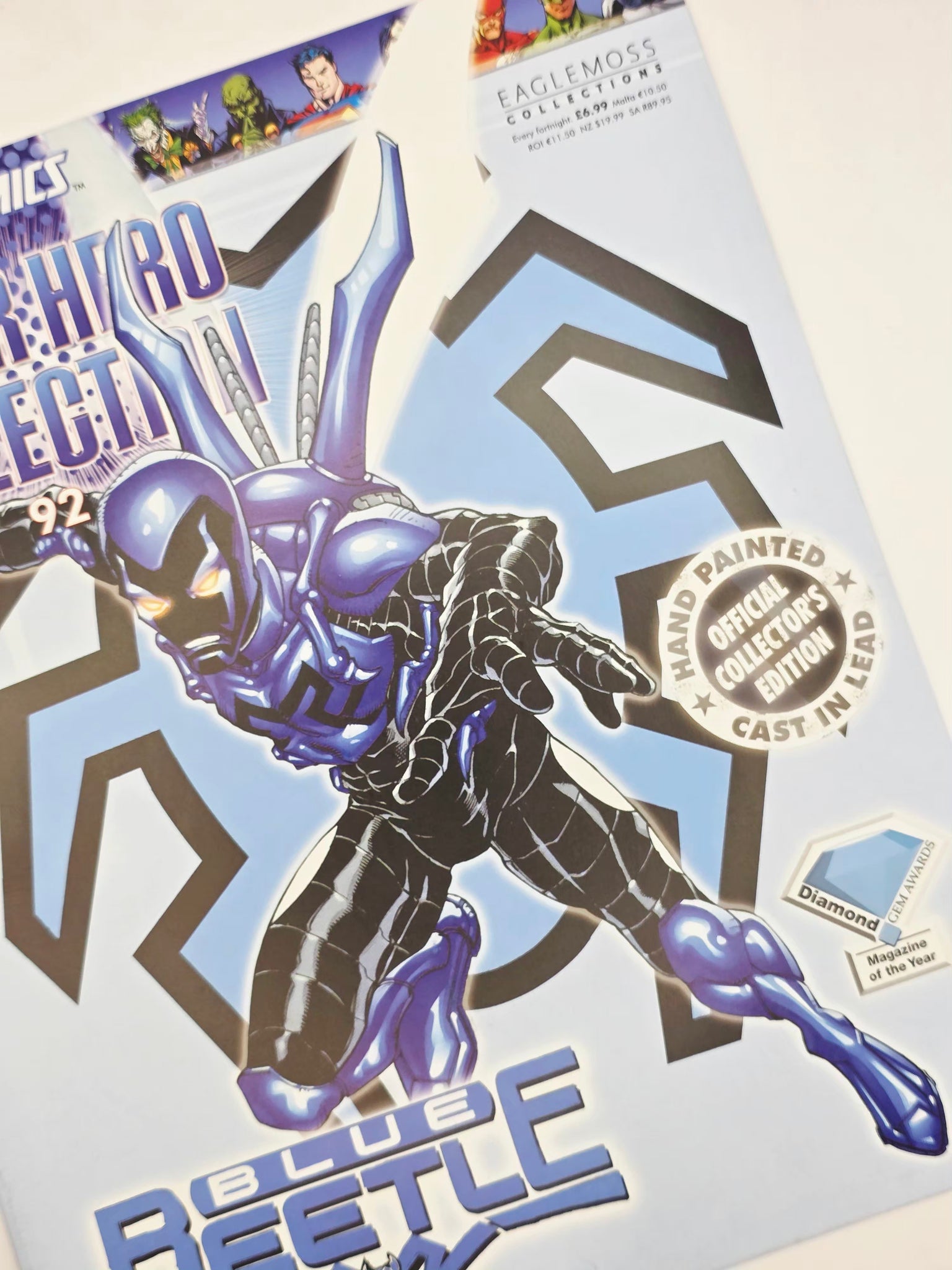 Blue Beetle figurine n° 92 from the DC Comic Super Hero Collection series. This collection figurine is made by Eaglemoss under license DC Comics. This statue is taken from DC Comics comics heroes.