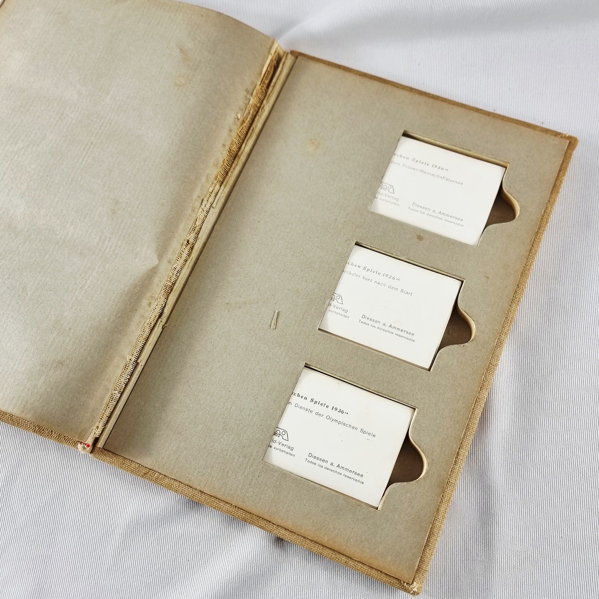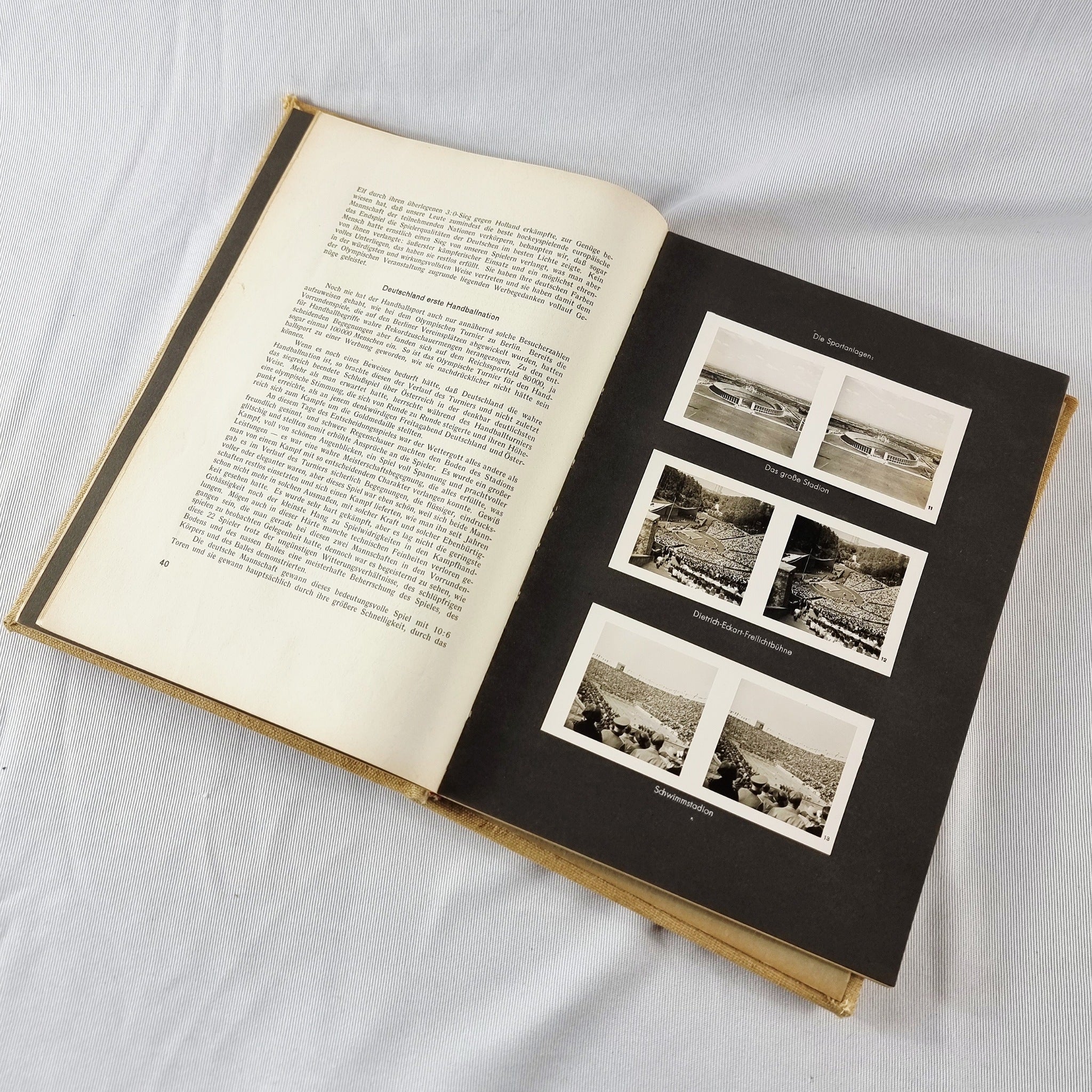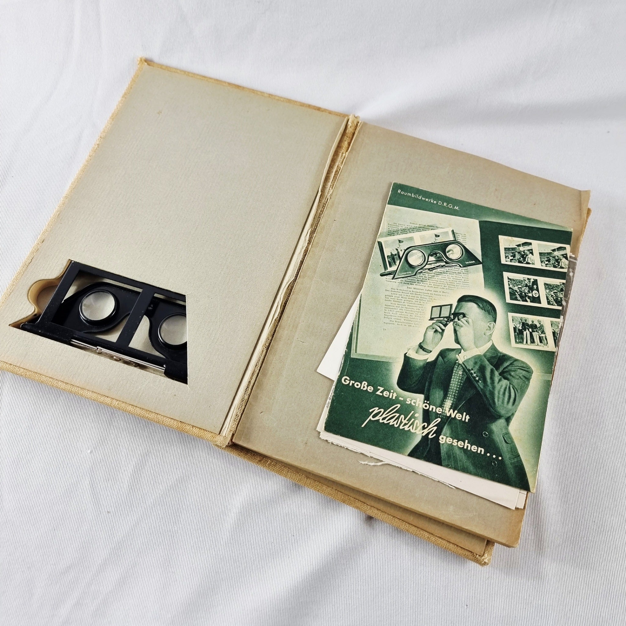 Die Olympischen Spiele 1936 with 100 Photos of the Olympic Games. With stereo view photos. 100 in total. Fantastic piece of history. In great condition with a little wear to the corner of the book and the binding slightly coming loose to the interior.