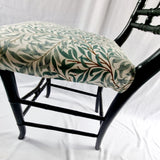 Antique ebonised faux bamboo side chair, made in the late 19th century. This victorian chair is beautifully made, with the wood turned to imitate bamboo. Made out of mahogany and ebonised, the chair also features, William morris design fabric to the seat.