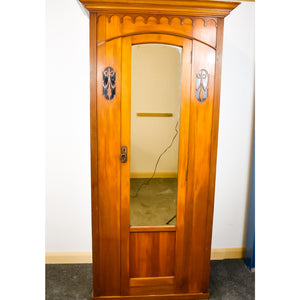 Here is a bargain piece of furniture that doesnt even add up to a pound for each year of its life. It has some minor bits of trim missing and has a few knocks and bumps. But is still in good condition, just needs someone to love it again. Features mirrored central door that opens up to its original hooks in the interior with a later rail added to it. This waredrobe has lasted 100 years and will last another 100 with abit of care. Antique furniture is built to last and this is a good example of something that will last. Please check photos carefully.