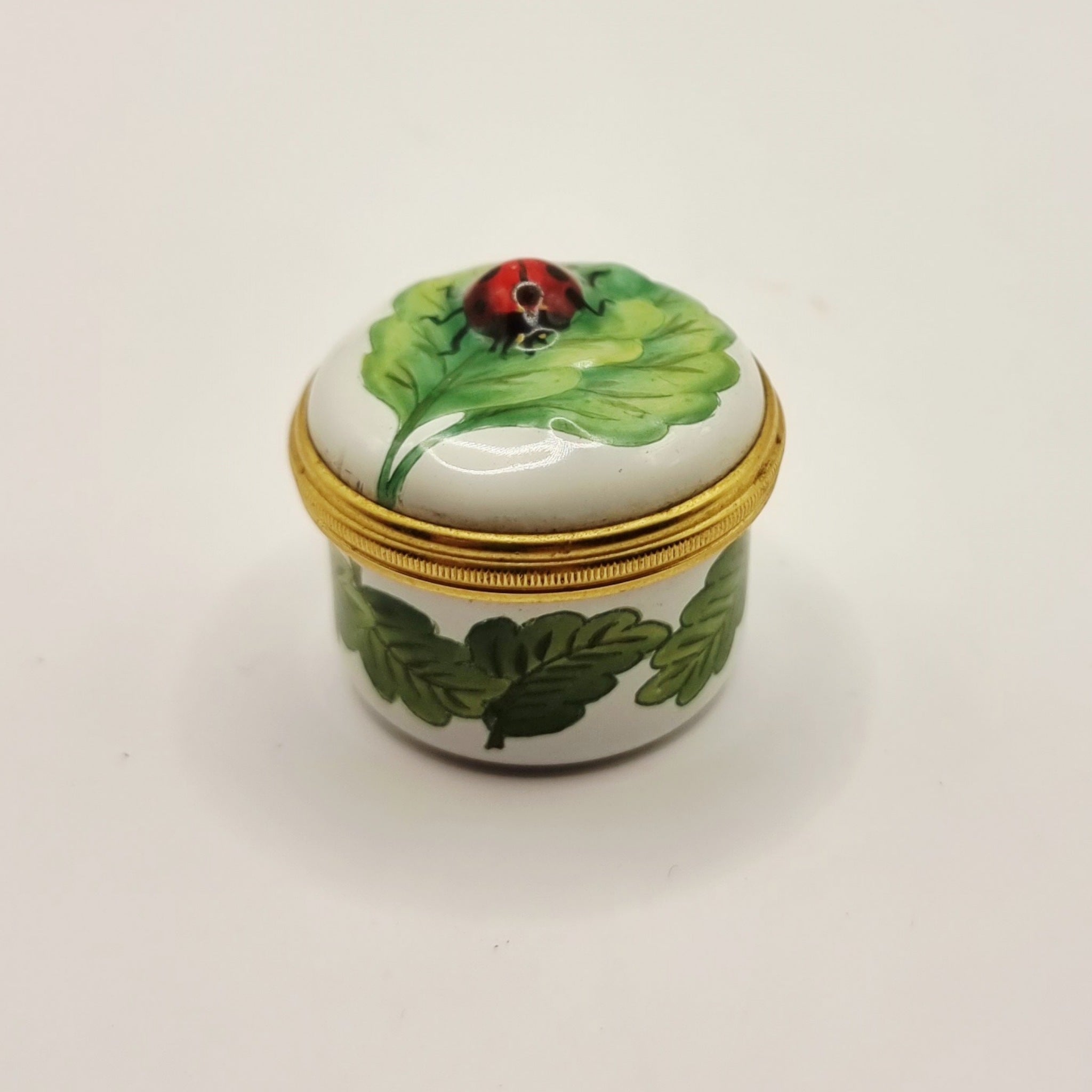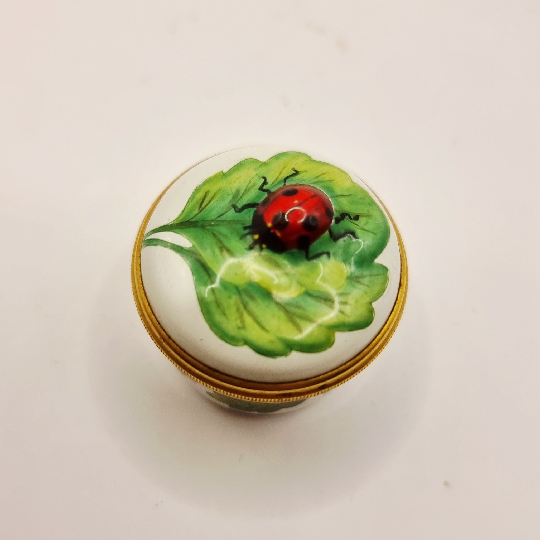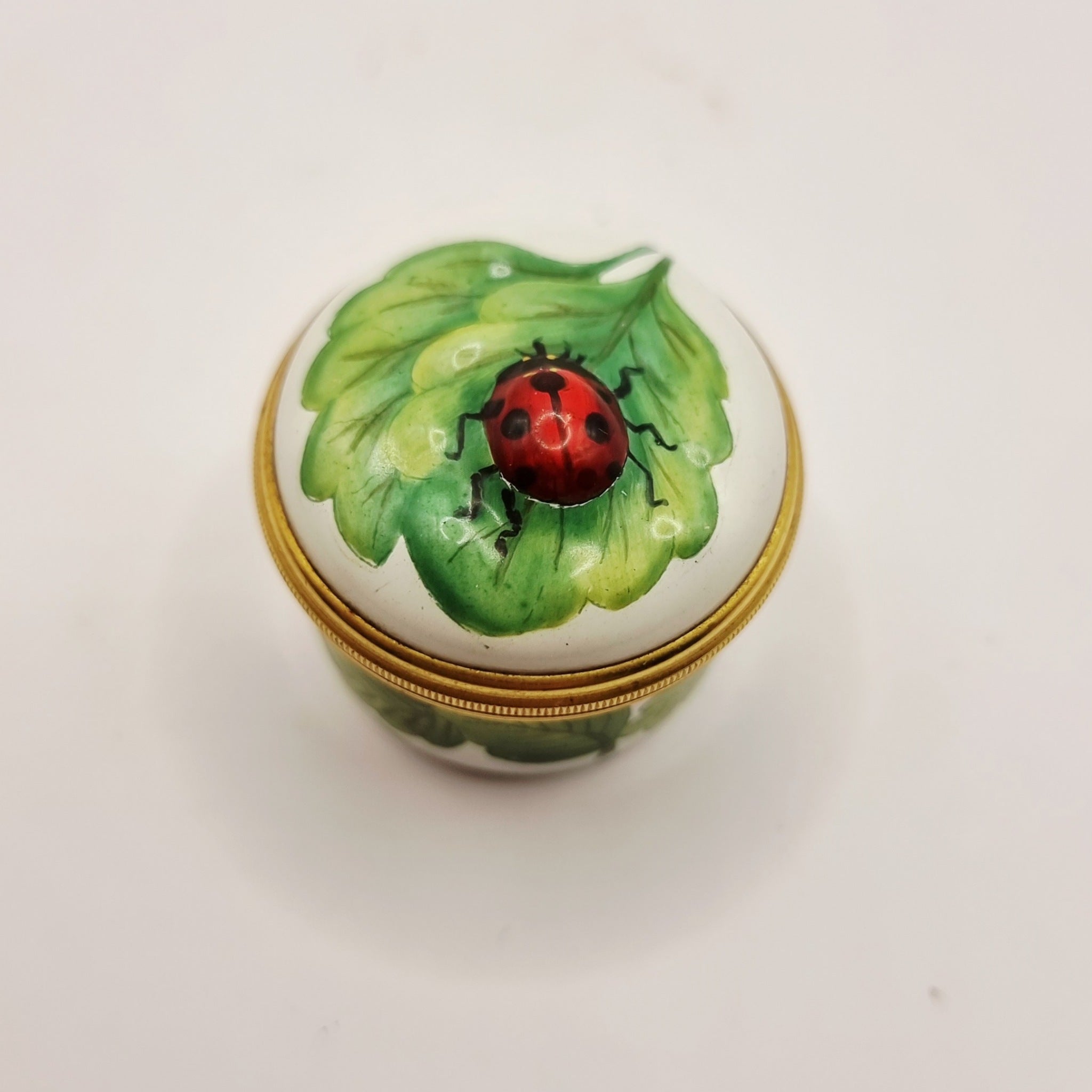Halcyon Days Enamels Ladybug with Leaf Miniature Trinket or Pill Box.