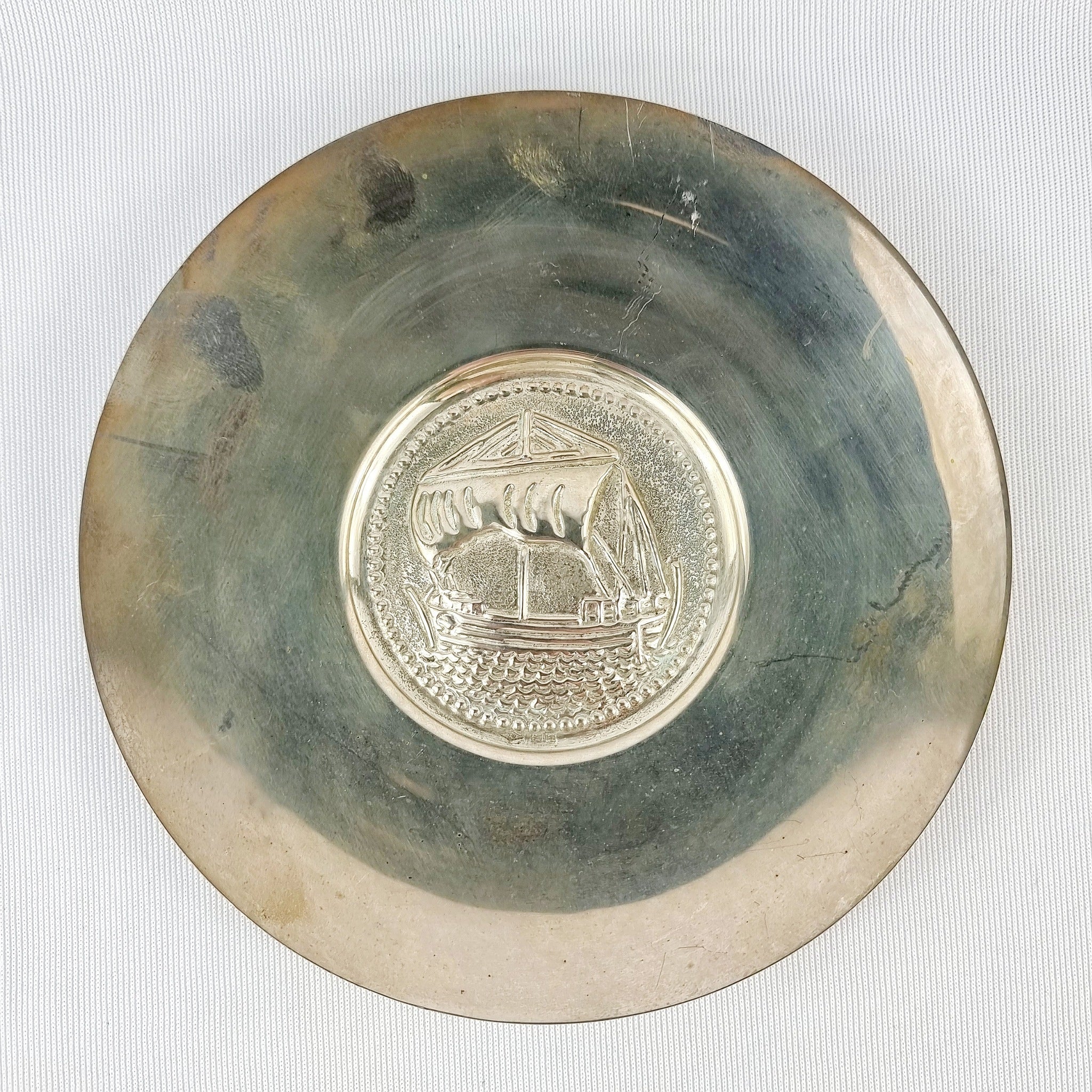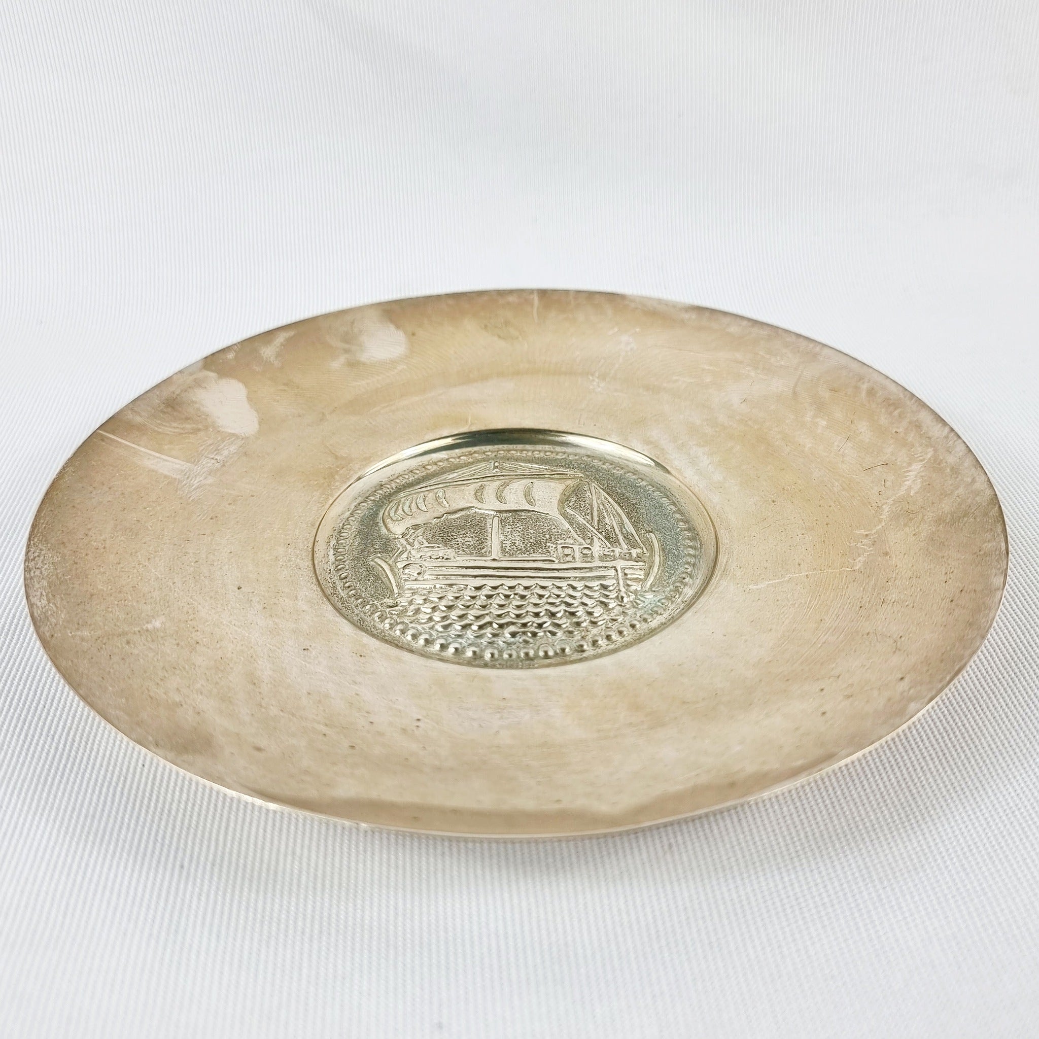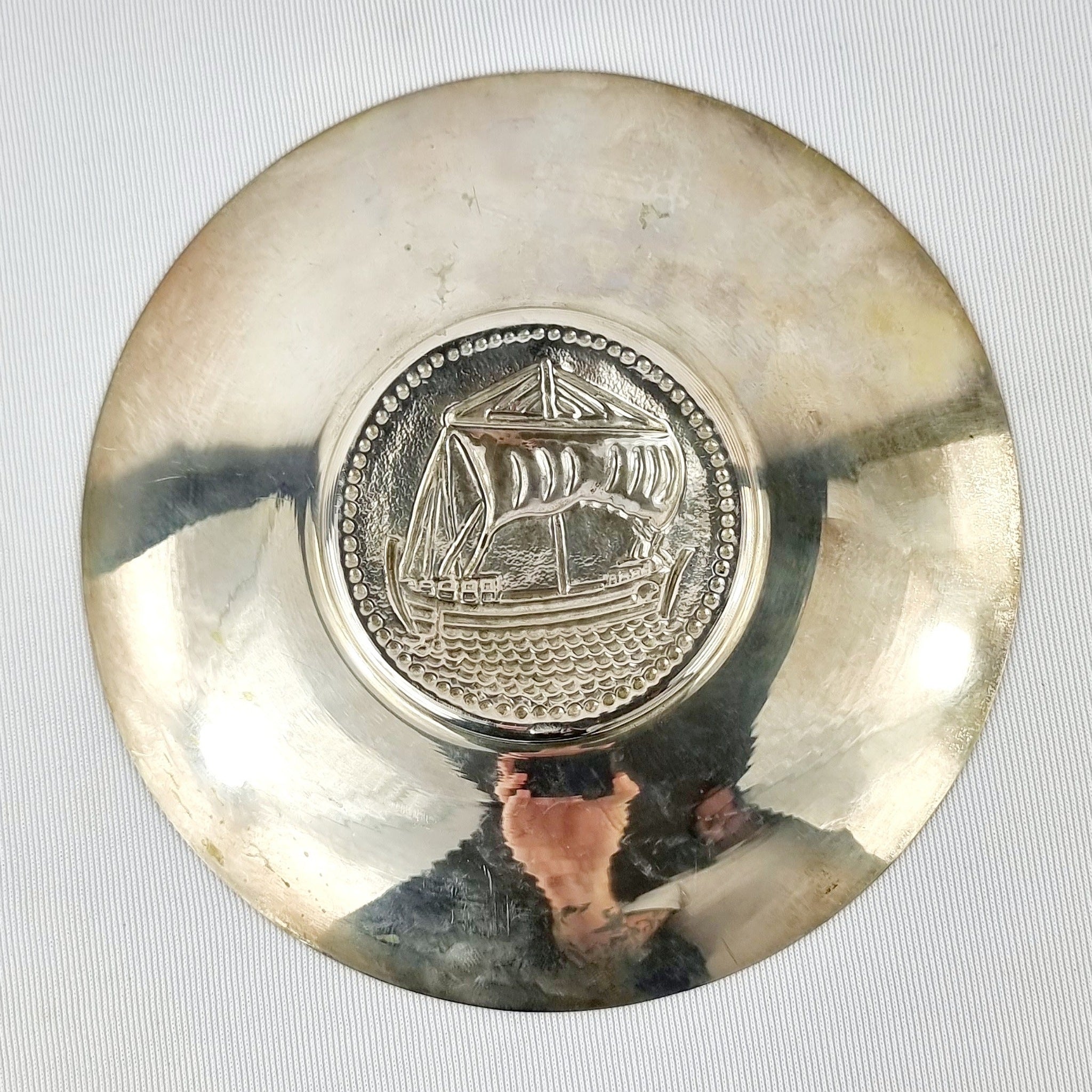 Silver Greek Cypriot Galley or Ship Charger Dish.