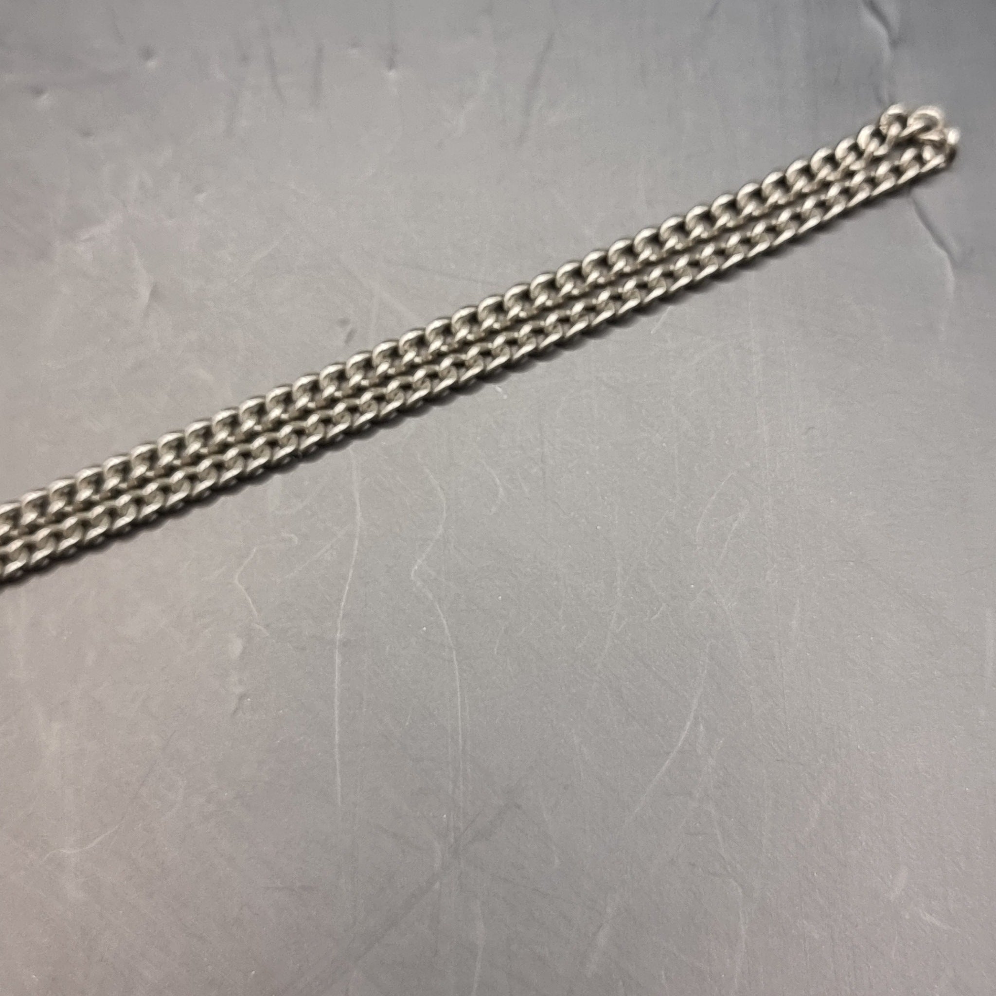 Width 5cm, height including loop 6.7cm, Depth 1.5cm, chain Length 34cm.