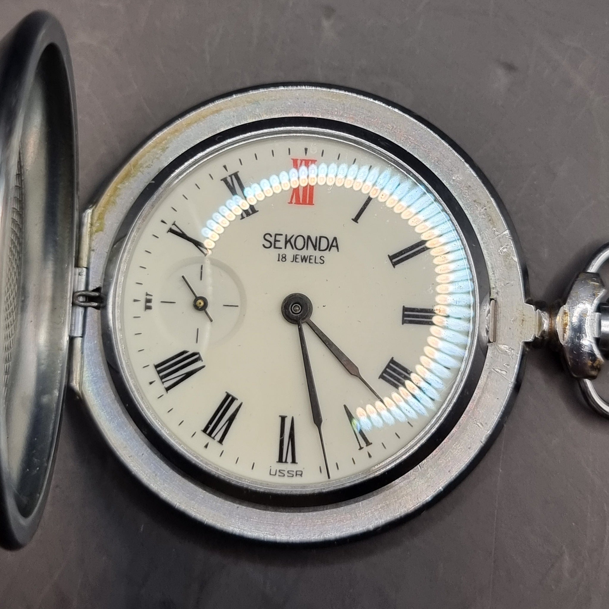 Vintage Full Hunter Sekonda 18 Jewels USSR Fob Pocket Watch