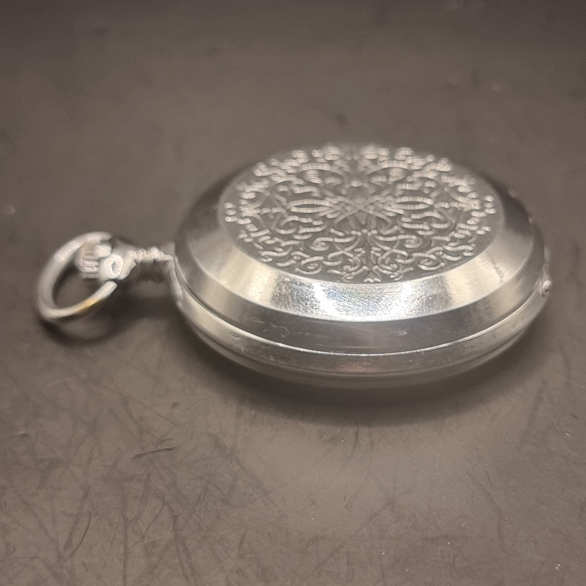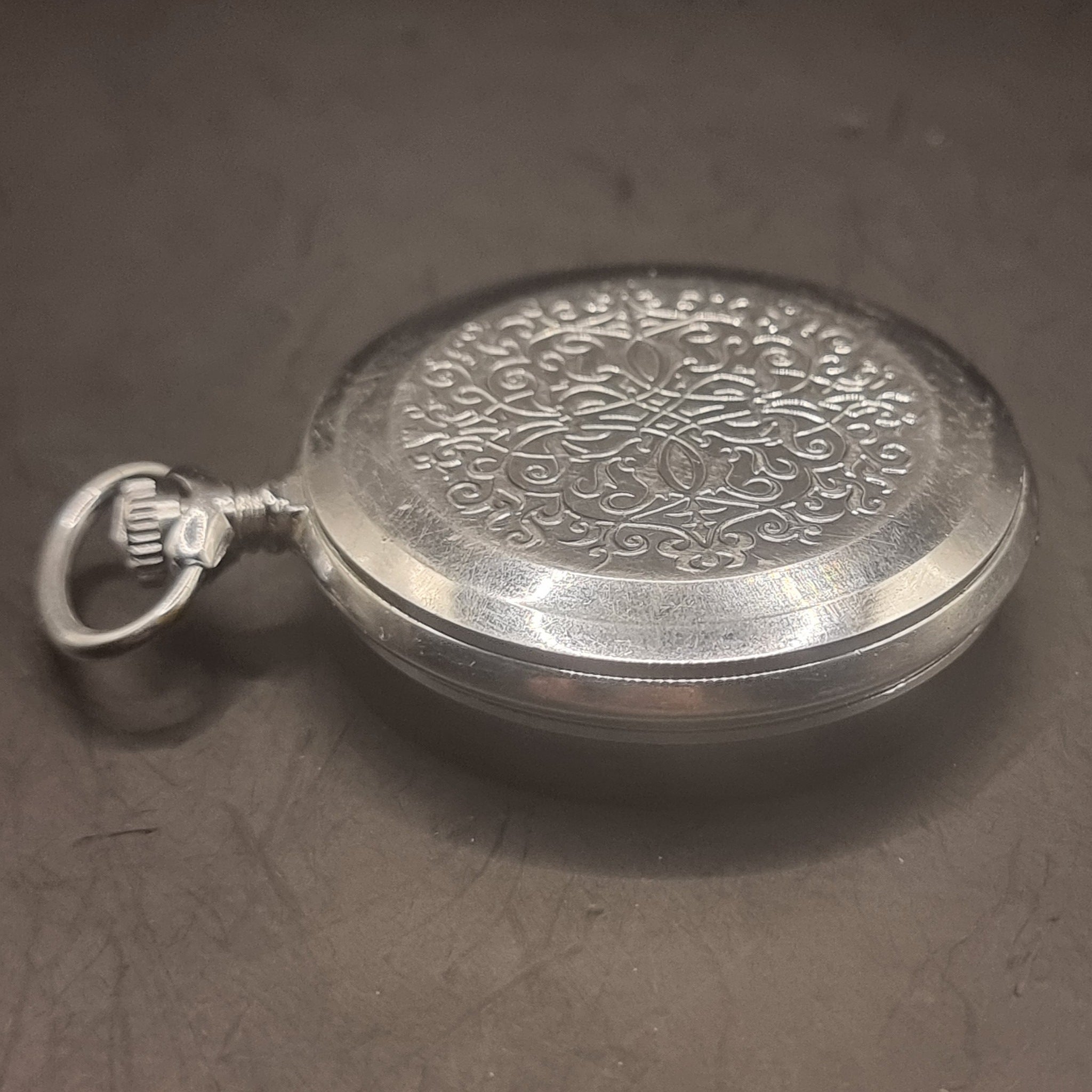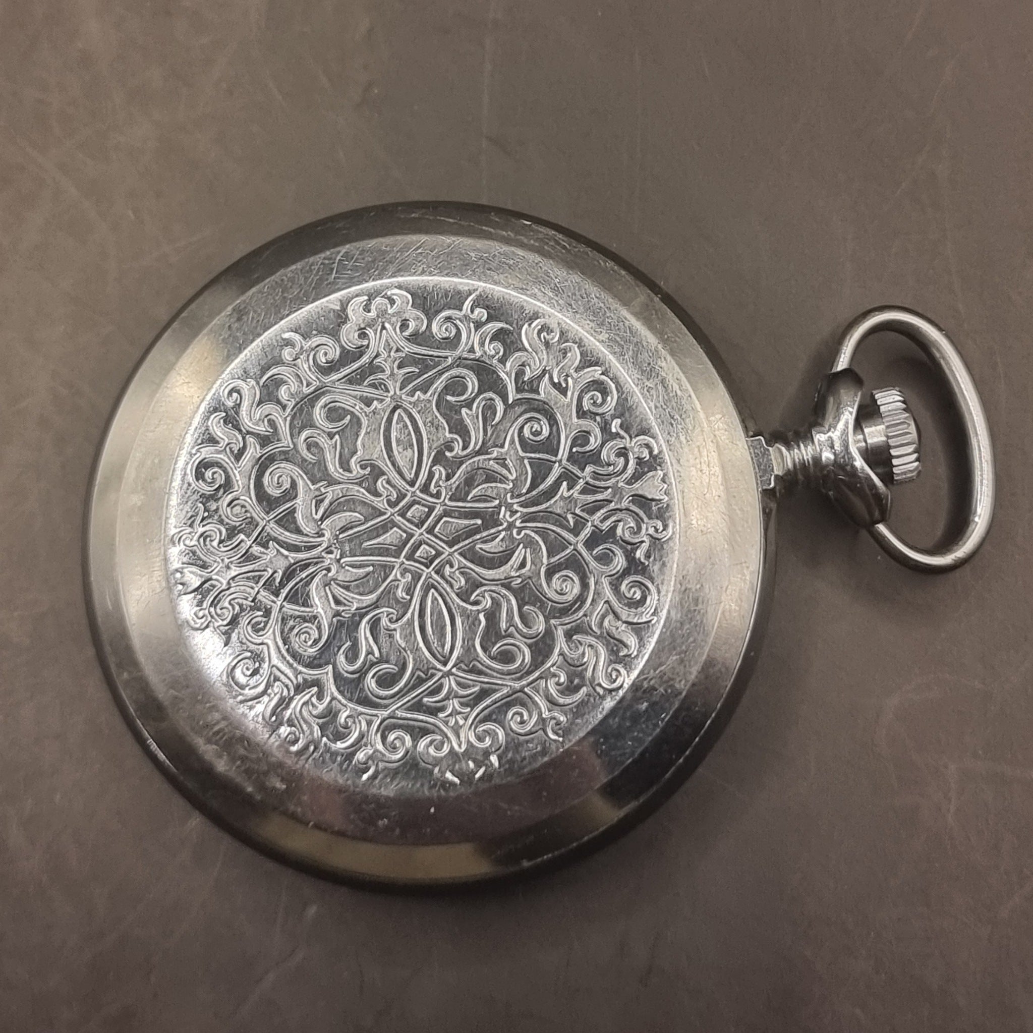 Vintage Sekonda 18 Jewels USSR Full Hunter Fob Pocket Watch. Made in Russia by sekonda, featuring an 18 jewel Movement in good working order. The full Hunter has demask patterning to the front and back. In a chrome finish. Some light surface marks and scuffs and scratches but otherwise in good condition.