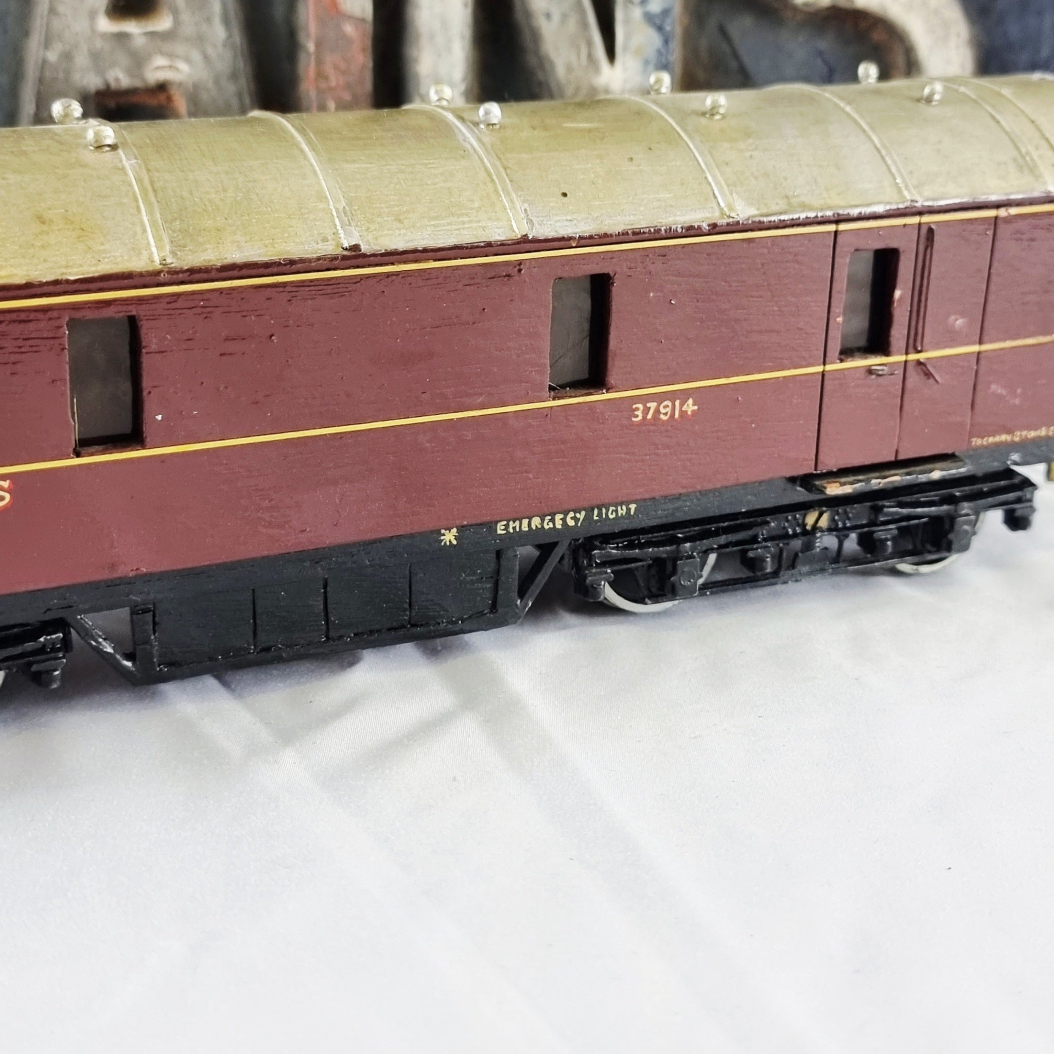 0 Gauge Course Scale Kit Built Carriage LMS 37914. This carriage has minor scratches and paint chips but is in good condition. Numbered to the side.