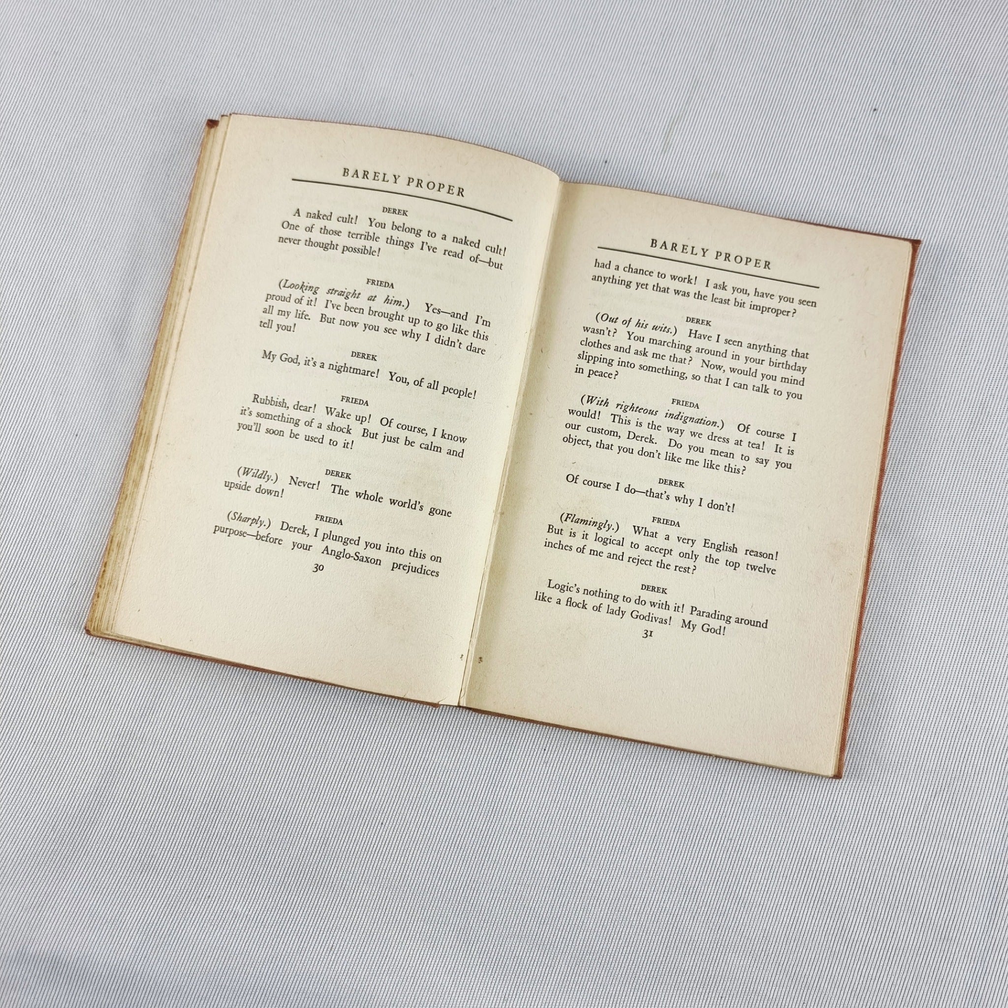 1931 Barely Proper An unplayable play by Tom Cushing Hardback Book