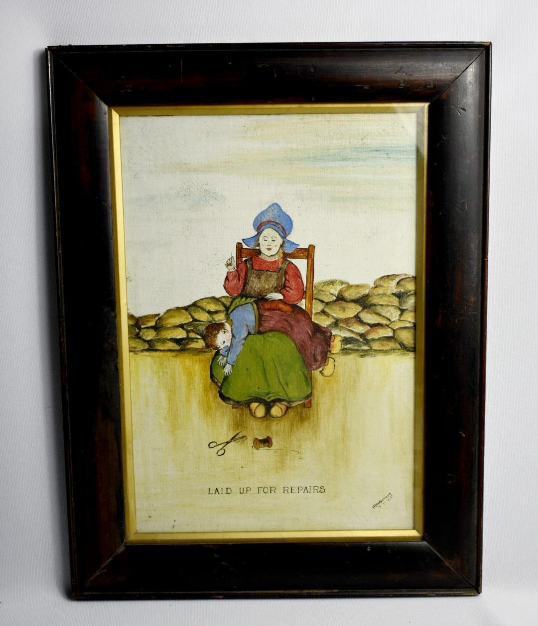 • Dutch oil on canvas titled "Laid Up For Repairs".