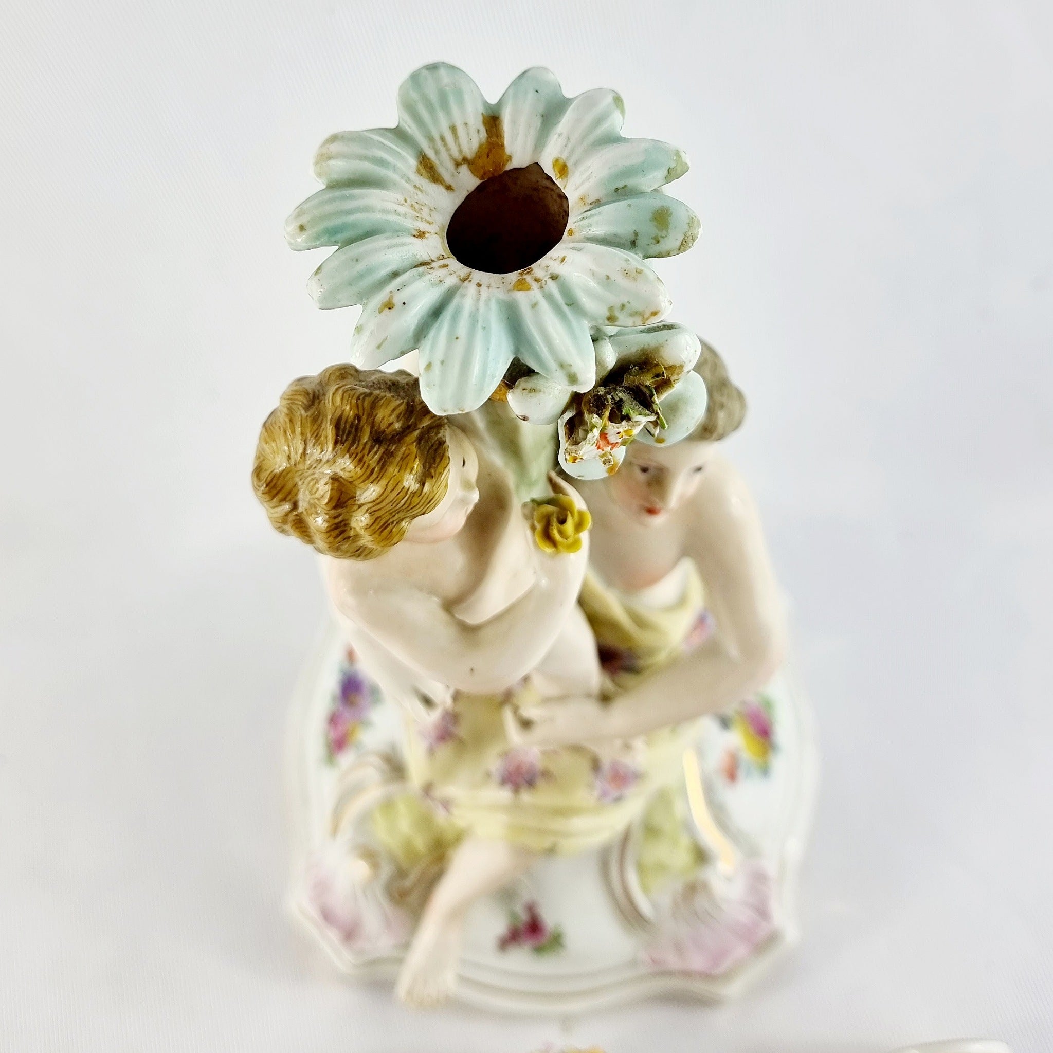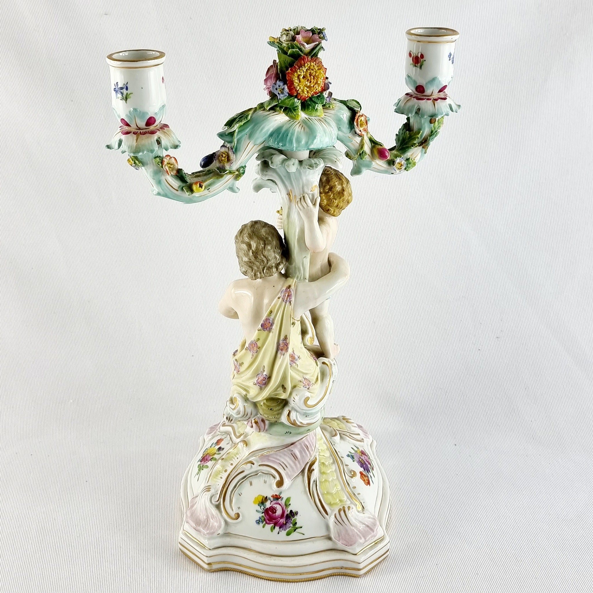 Antique 19th century German Porcelain candelabra in the style of meissen. The candelabra is not marked with meissen marks but does have the look of the famous German Porcelain Craftsman. Some of the flowers and leaves look to be slightly chipped but apart from this, it is in great condition.