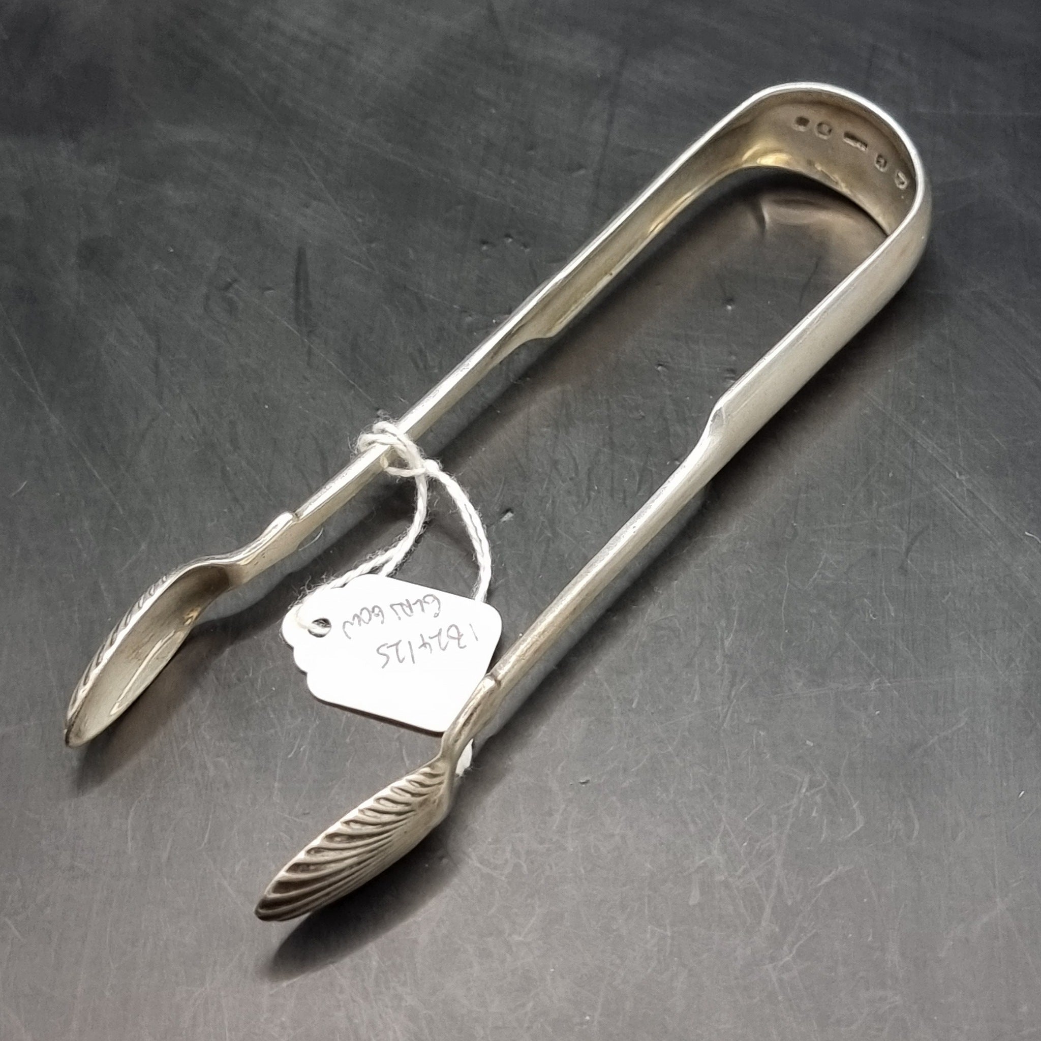Antique 1824 Glasgow Silver Sugar Tongs Shell Pattern