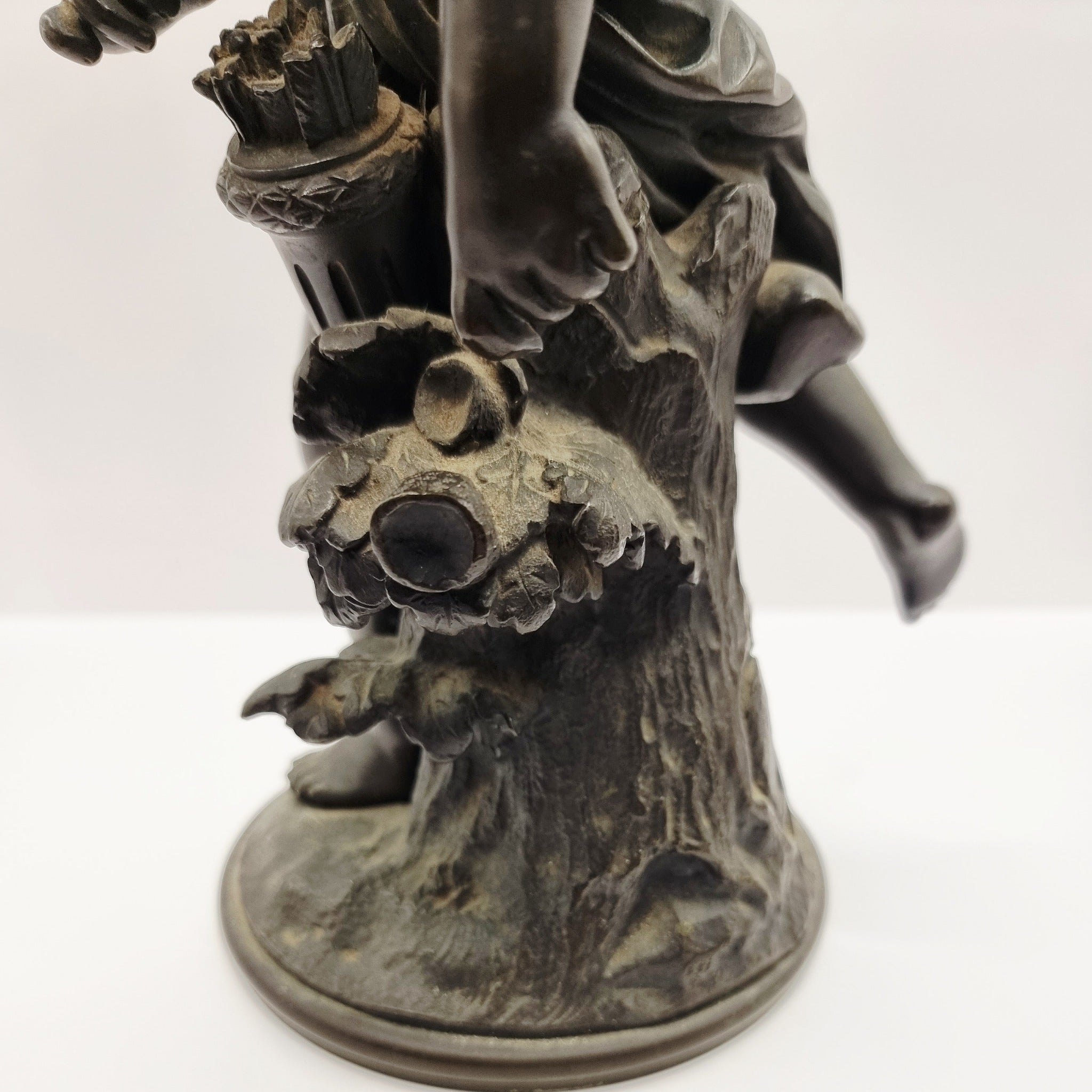 Antique 19th Century French Bronze Cherub or Cupid. A great quality bronze of this roman diety of love cupid with its arrow quiver to the side. A wonderful casting of this lovely bronze with great patina to it. Nice heavy solid bronze. In great condition apart from a wind is loose where the joint has come apart, the wing is still attached to the figure. Believed to be missing a bow in its left hand. Etched with a R to the underneath.