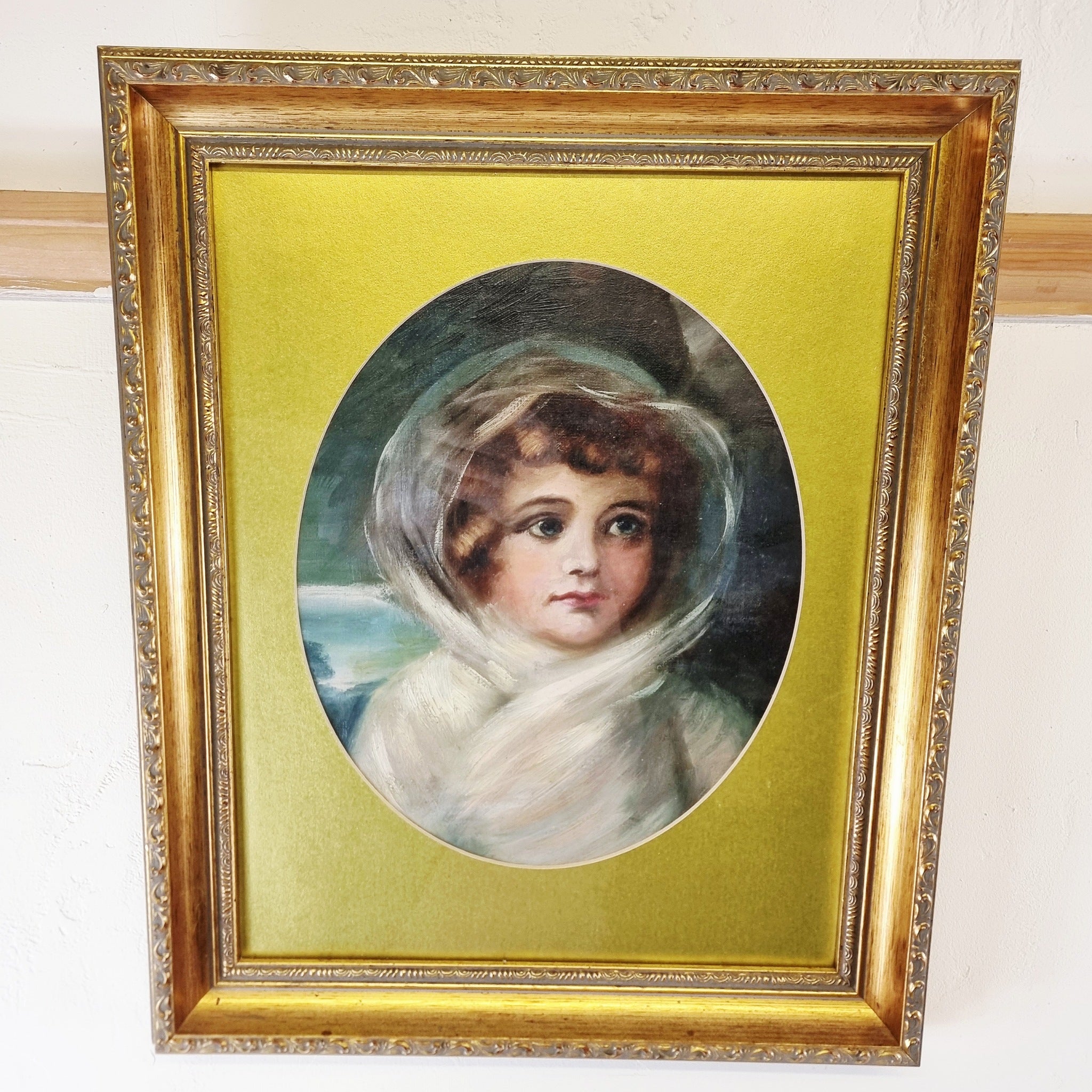 Antique 19th Century Oil on Canvas Portrait of a Young Girl. Believed to be relined and reframed and glazed. This is a wonderful looking painting featuring a young girl with a veil over head. No damage to be see. In really good condition.