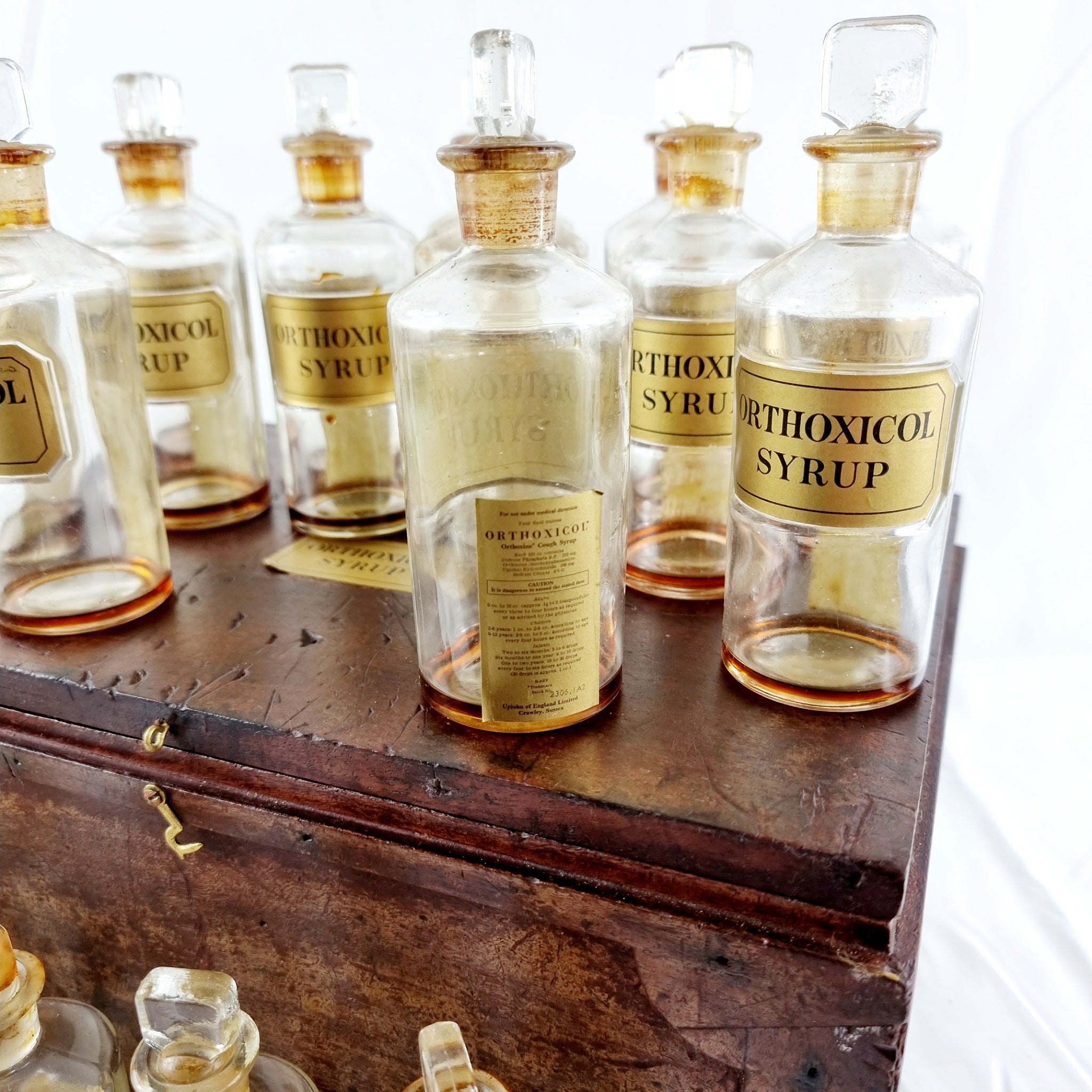 Antique 20th Century Orthoxicol Syrup Bottles in Fitted Box.