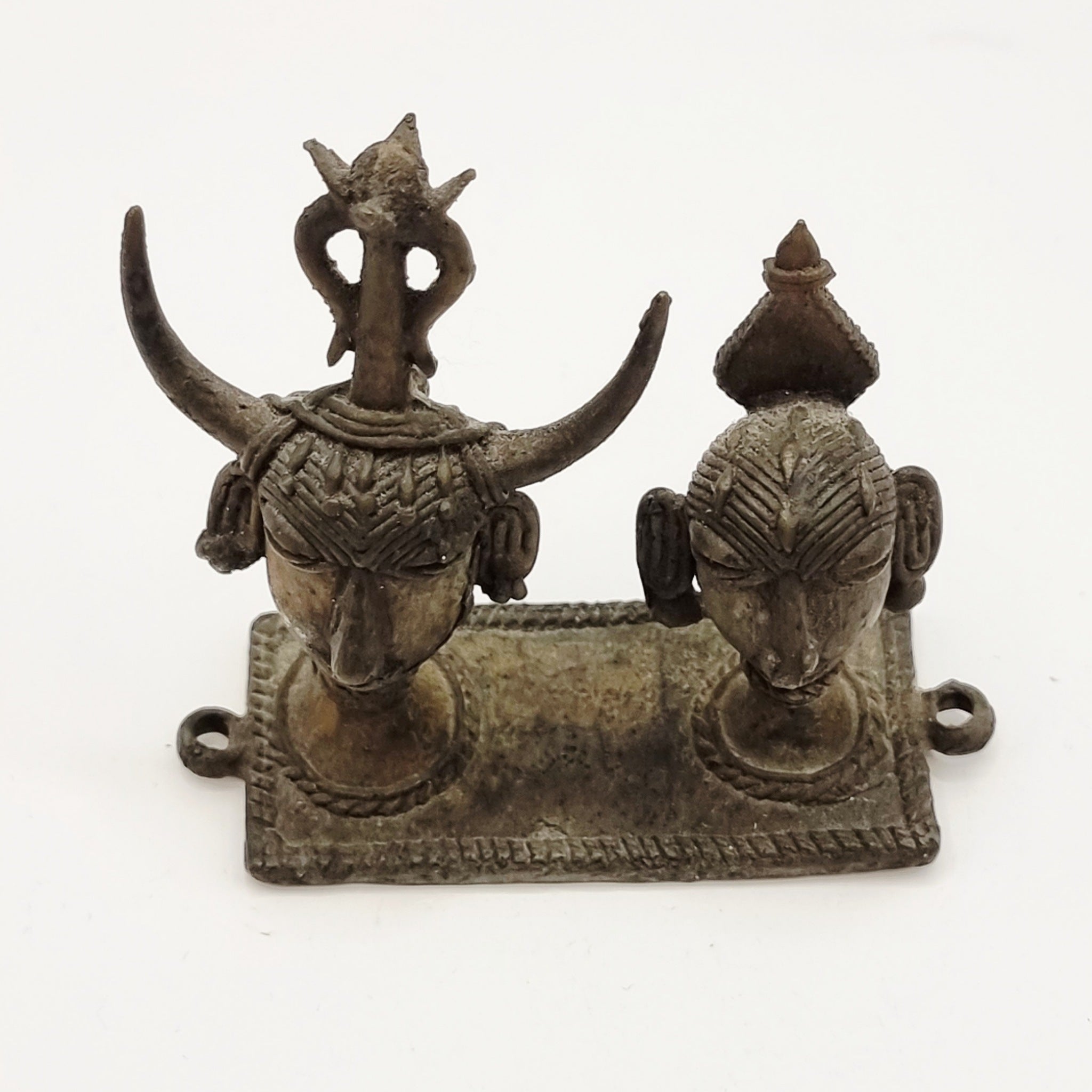 Antique Bronze Dhokra of a Couple Possibly part of a Headdress, with holes either side to mount with string. Dhokra is an ancient Indian metal art form. This is a wonderful bronze. In good condition.