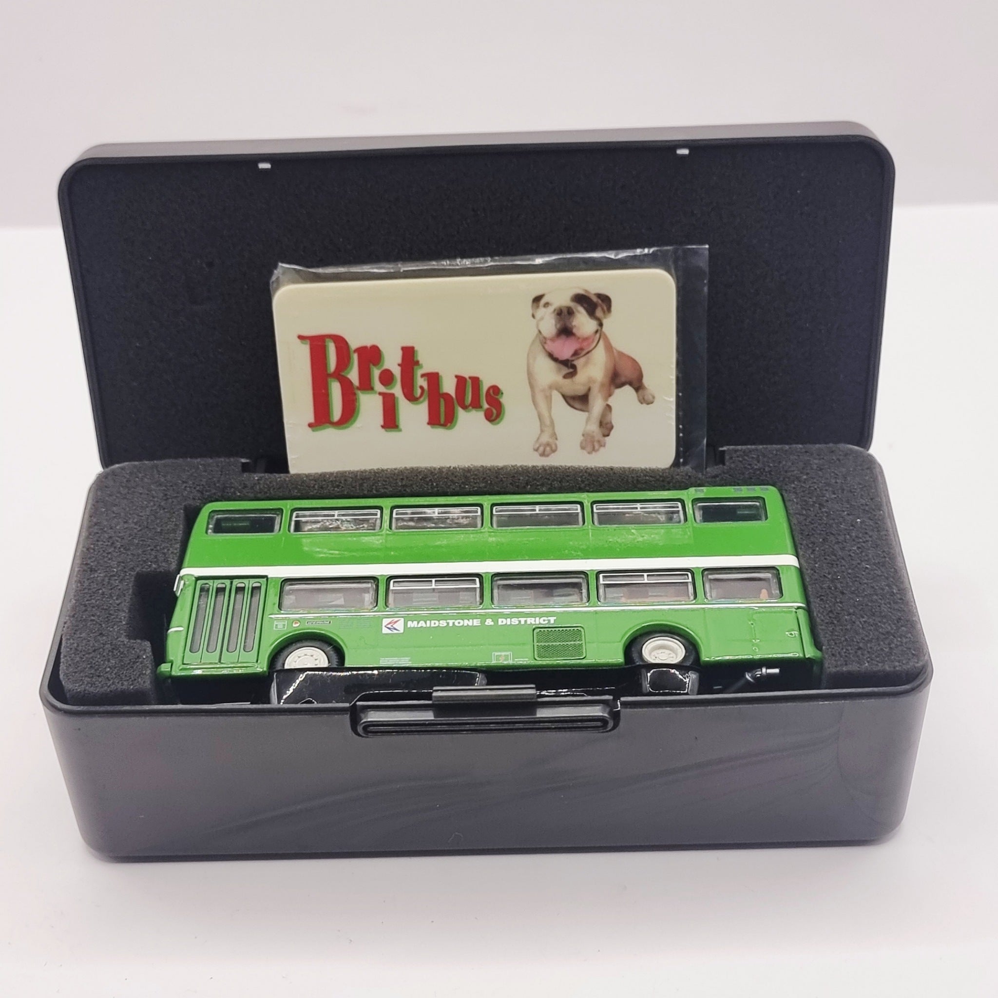 Britbus 1/76 "00" Scale Limited Edition Model Bus Scania Metropolitan single door double deck bus Maidstone and district 5254 bus 163 to borstal. No. 1045 out of 1248 made. N 6103. Some bubbling to the paint work and dents in the cardboard outer box. But otherwise great condition.