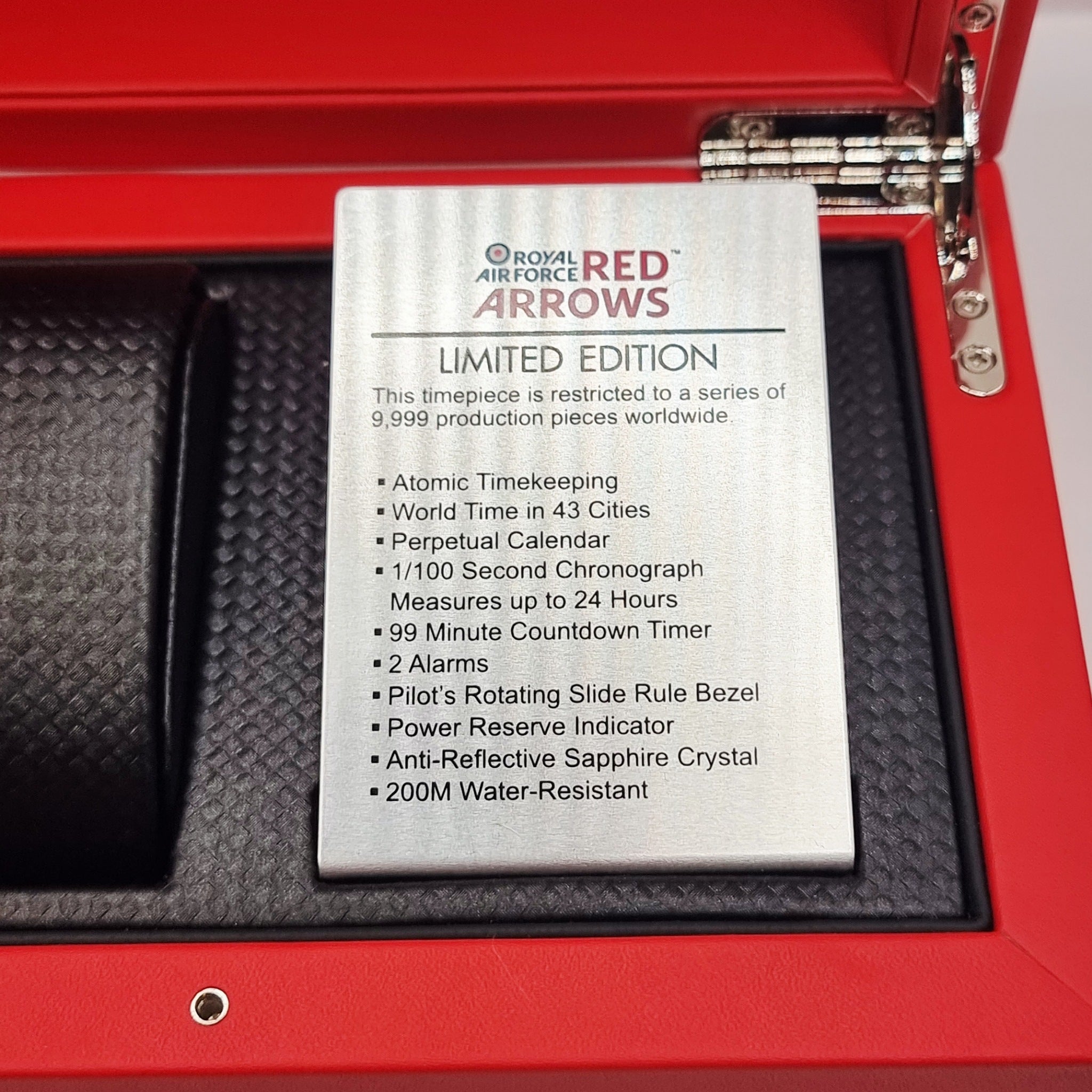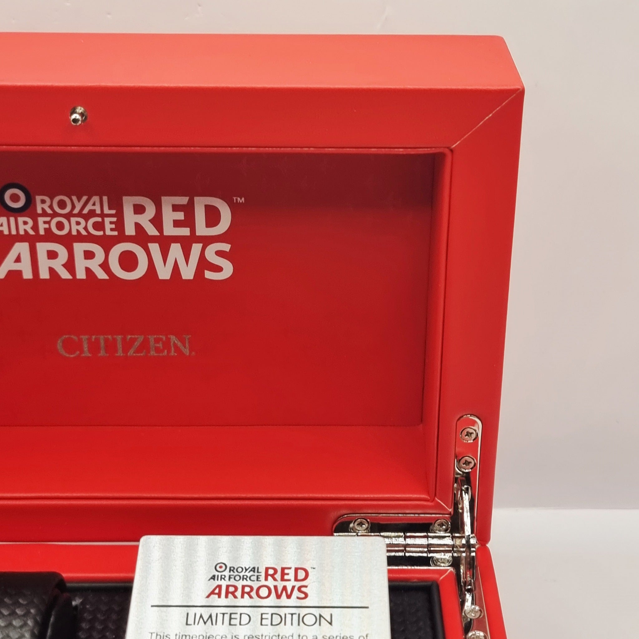 Citizen Eco-Drive WR 200 SkyHawk Red Arrows Box with paper work. All items in the photographs are included. In good condition.  Citizen red arrow limited edition box. With cards and plaque. Only thing missing is the watch. The cardboard box is slightly damaged.