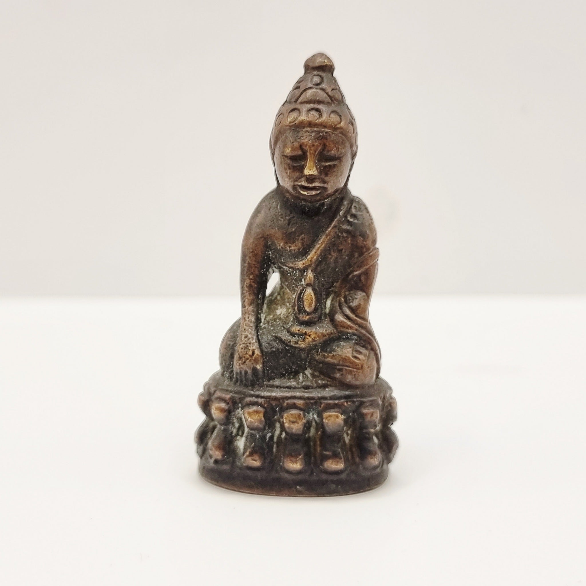 Small seated buddha Measures: Height 5.2cm, Width 2.5cm, Depth 1.7cm.