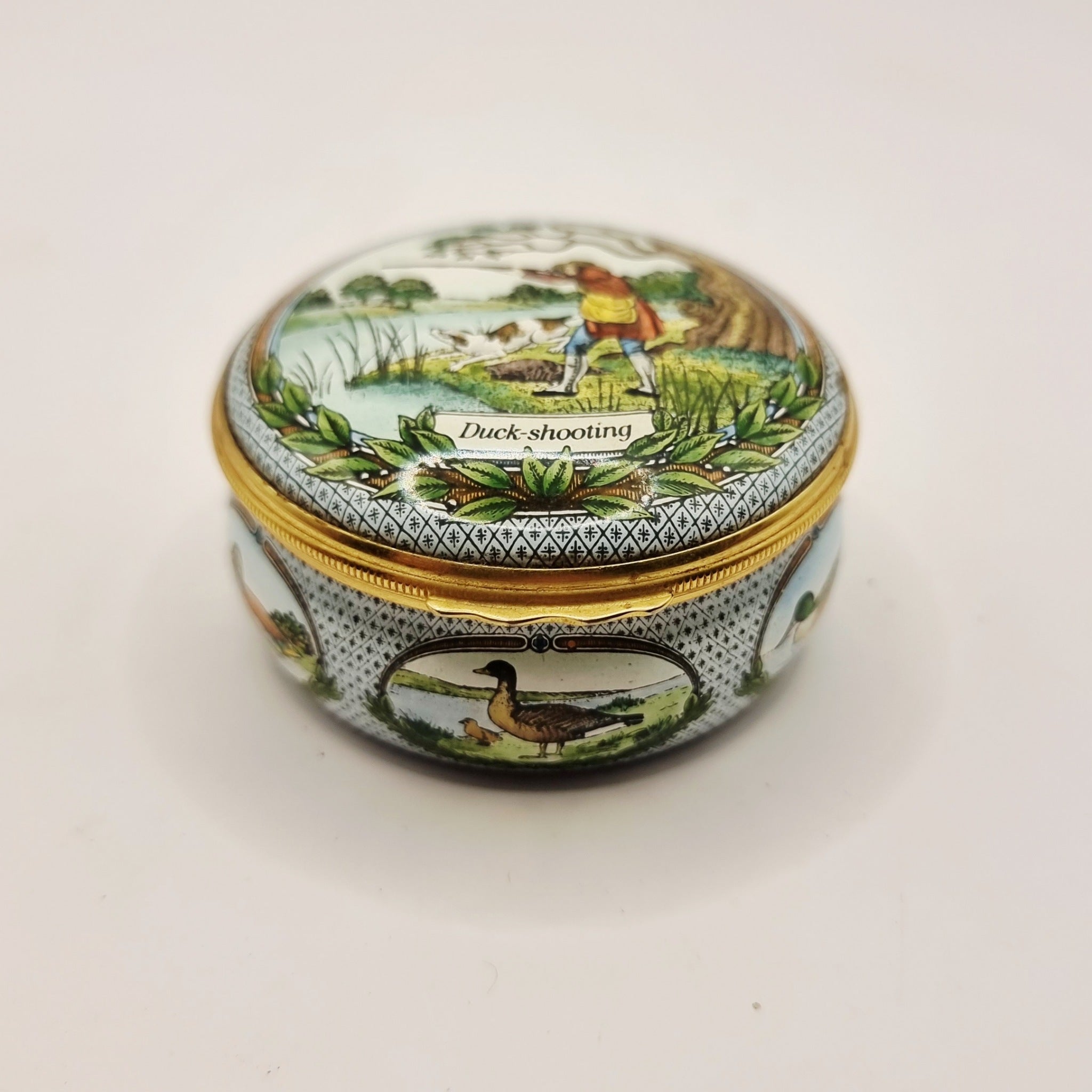 Halcyon Days Enamels Duck shooting By James Purley and sons Trinket or Pill Box