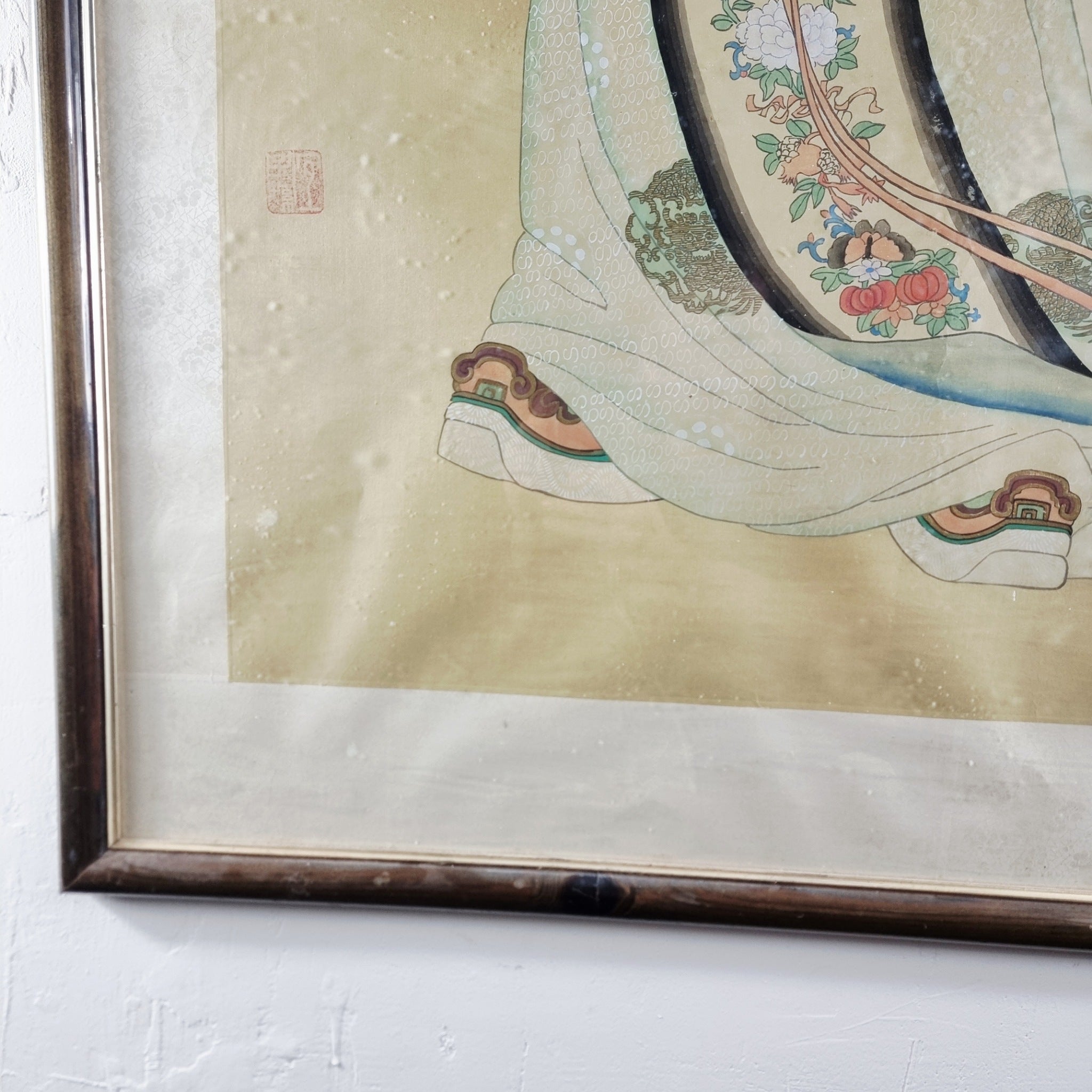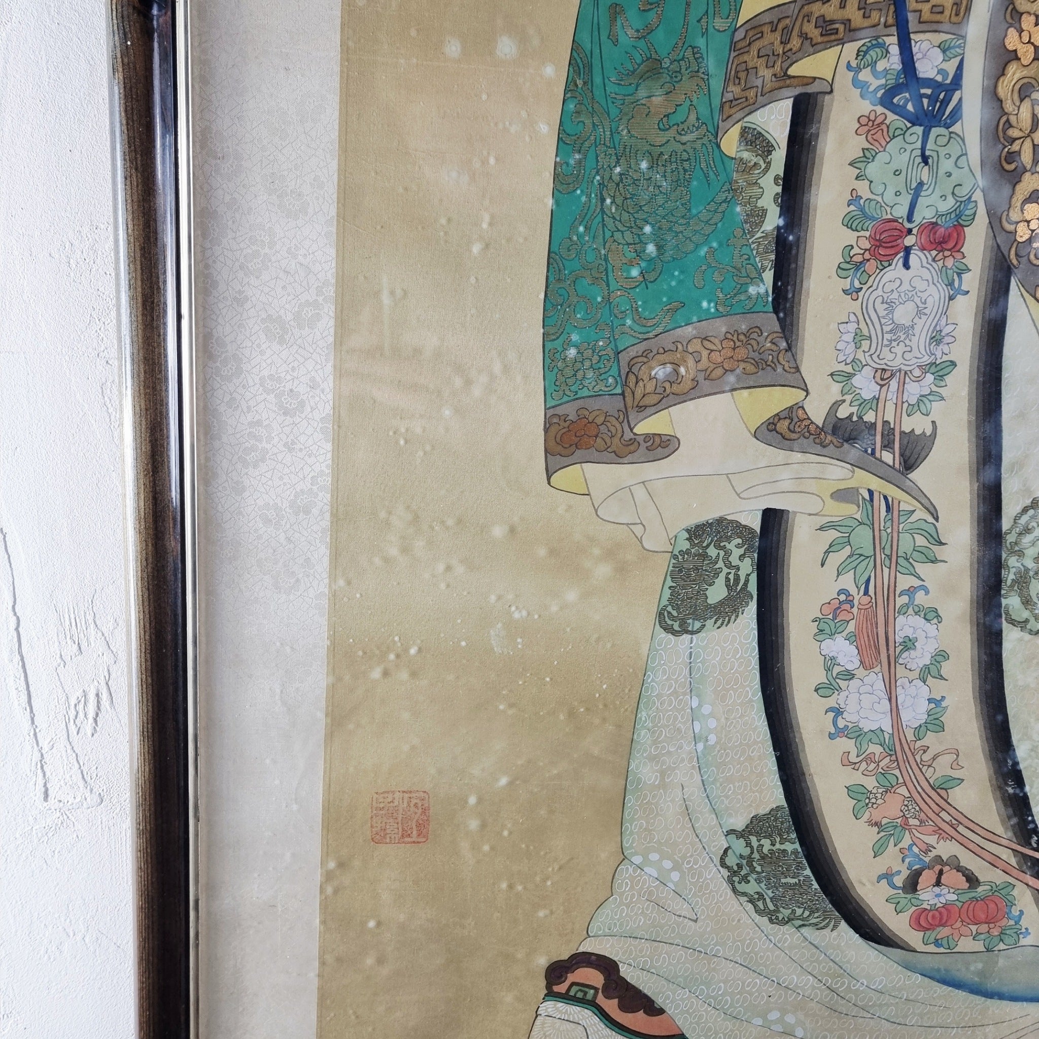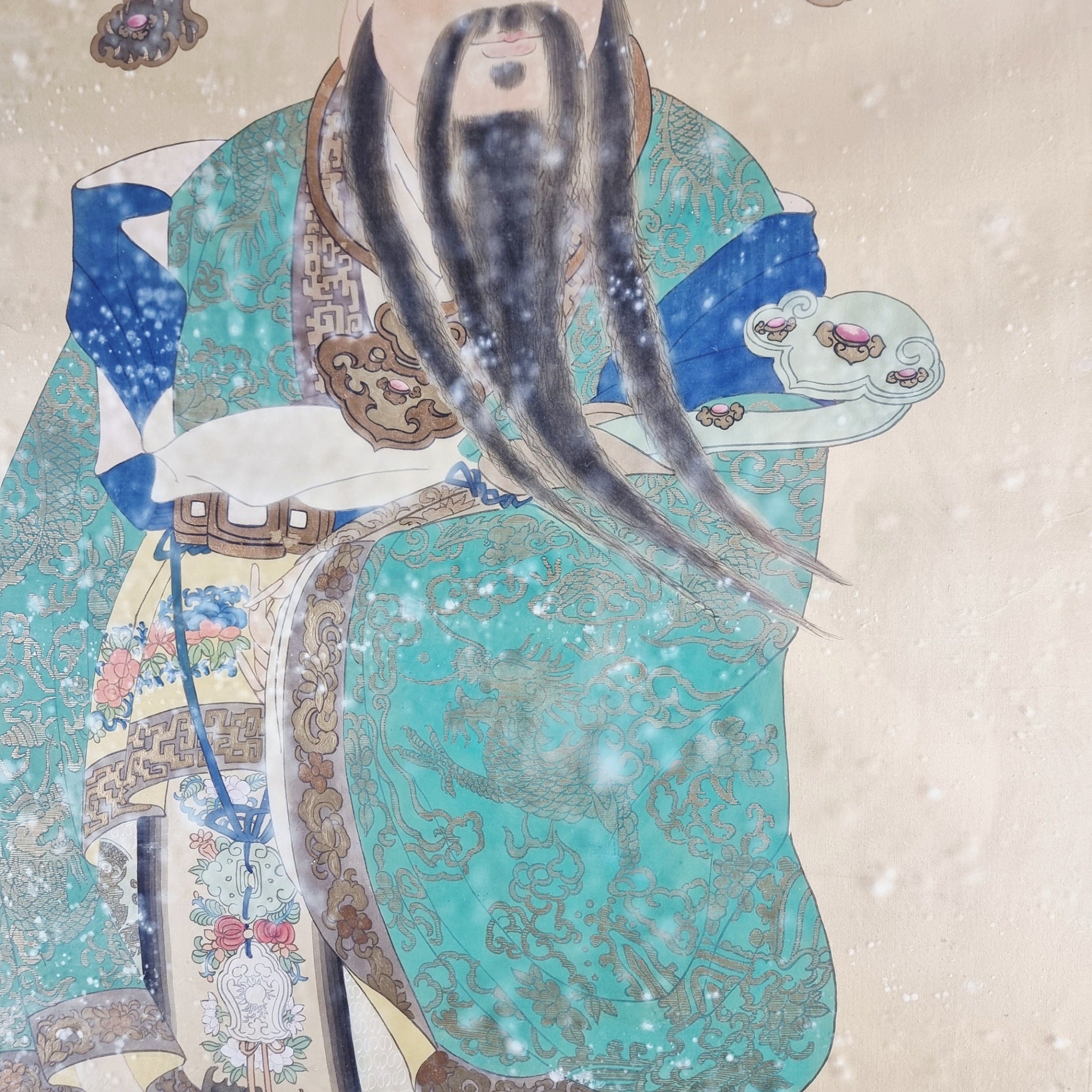 Large Antique Vintage Chinese Ancestor or Diety Watercolour On Paper