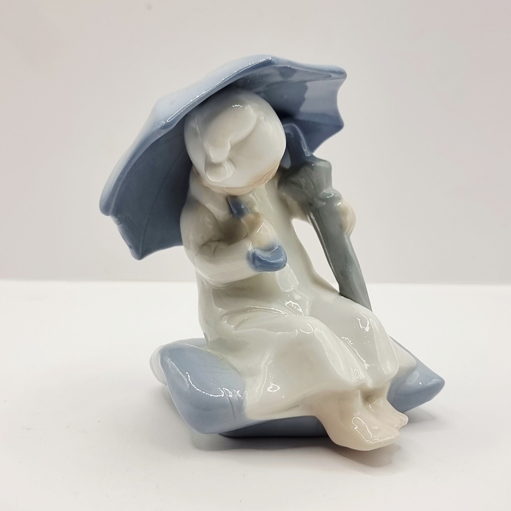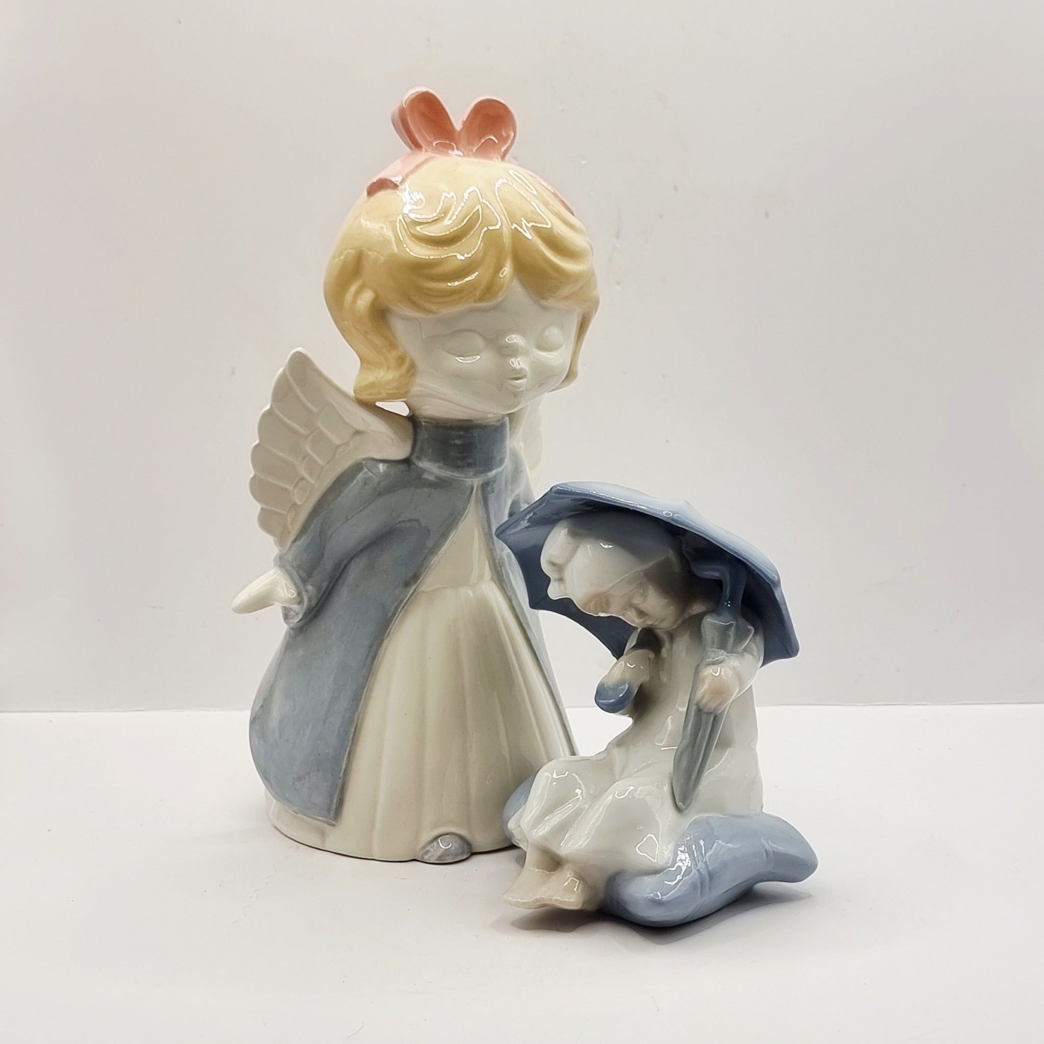 Lladro Style Angel and Boy with Umbrellas Made in Spain. Unknown makers to this lovely 2 pieces of Spanish porcelain. Both in lovely condition.