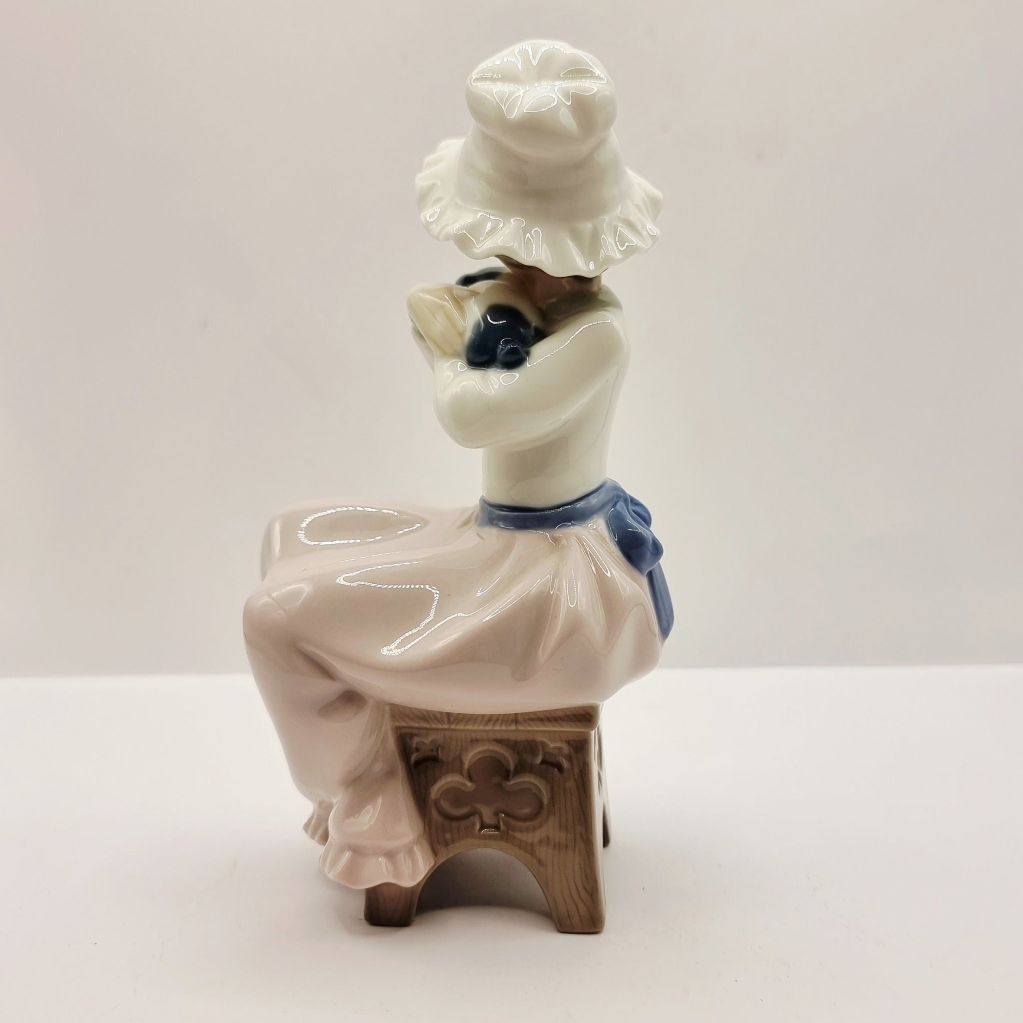 Nao by Lladro Figurine 1049 A Big Hug, Girl with Puppy sitting on a stool. In lovely condition.
