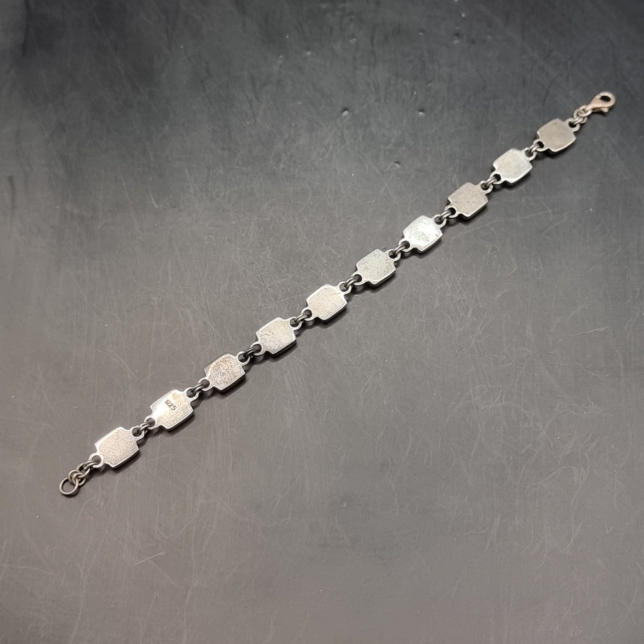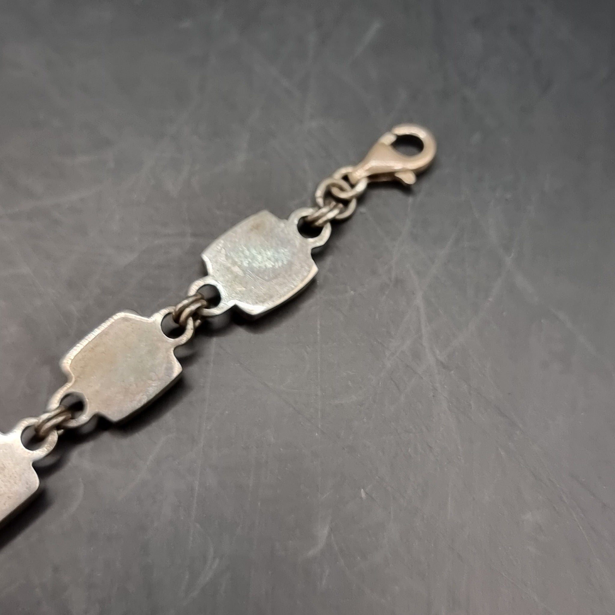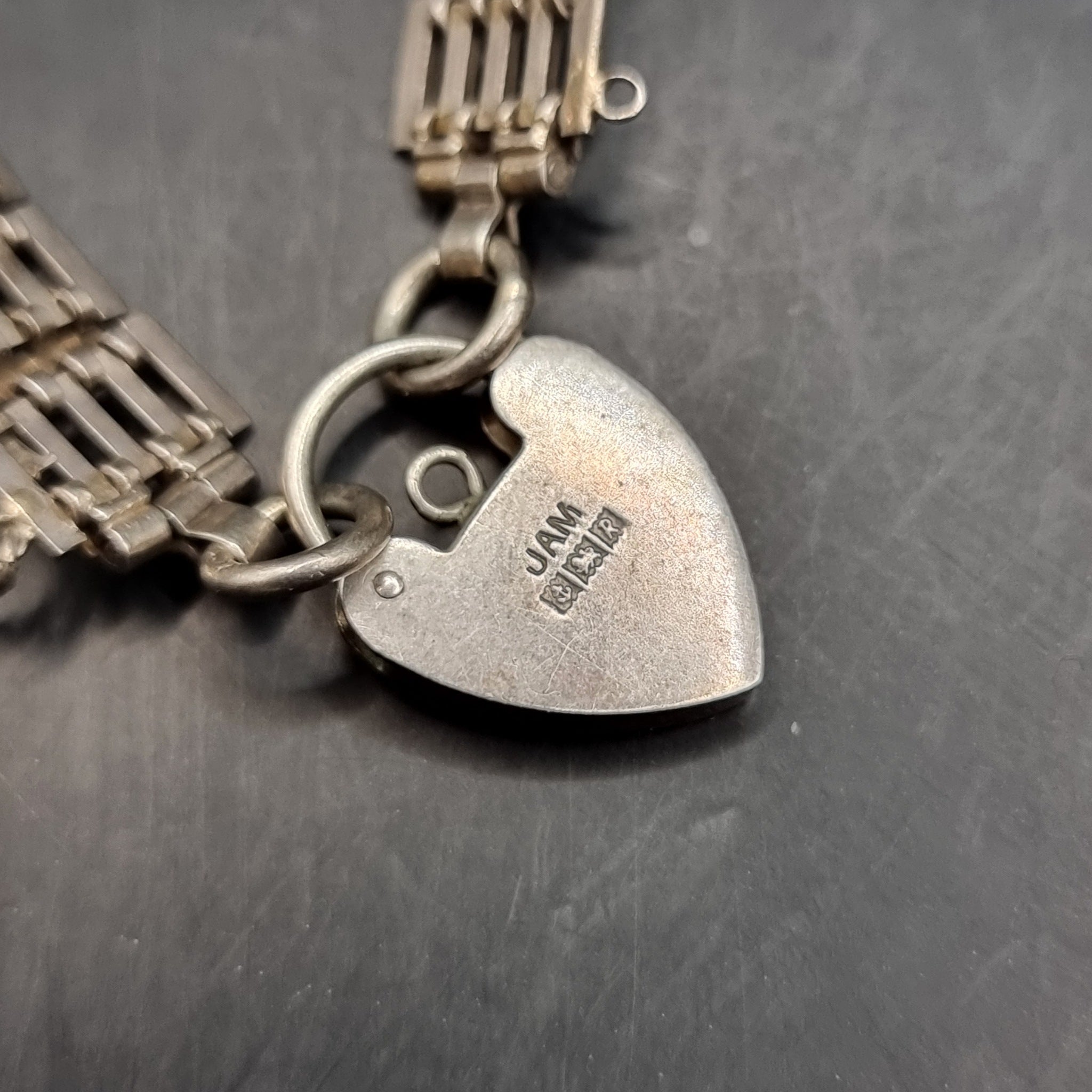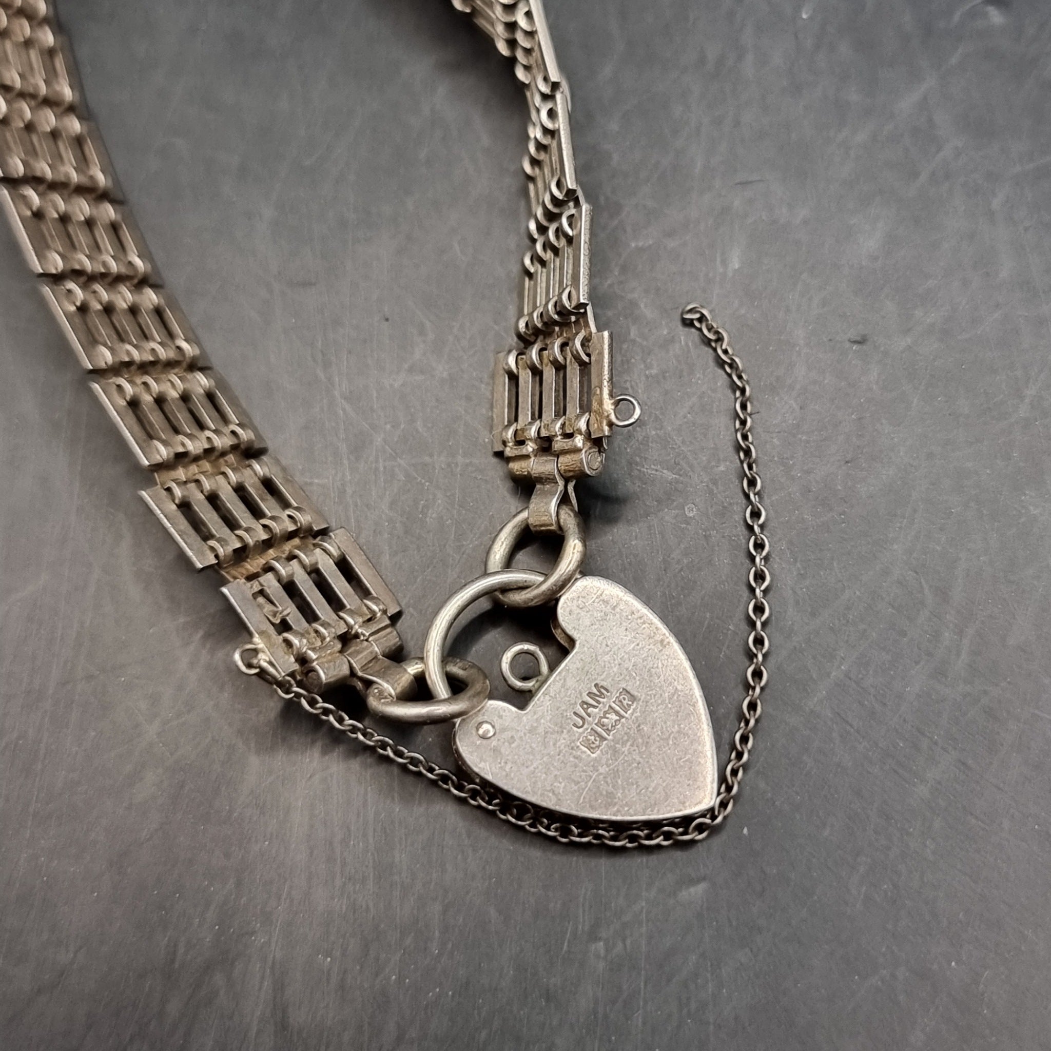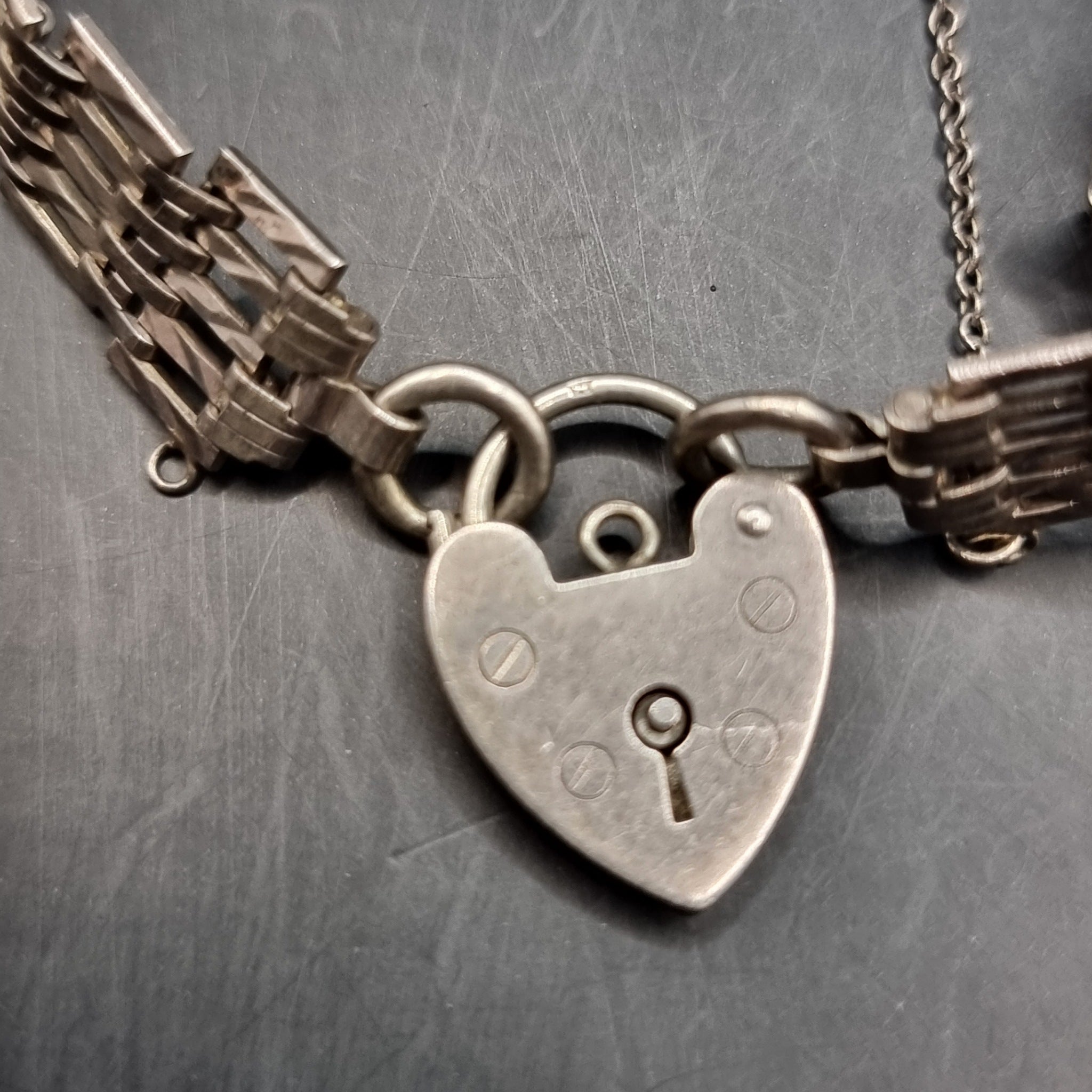 Three Silver Vintage Bracelets. Red Stone. Love Heart Locket Padlock.