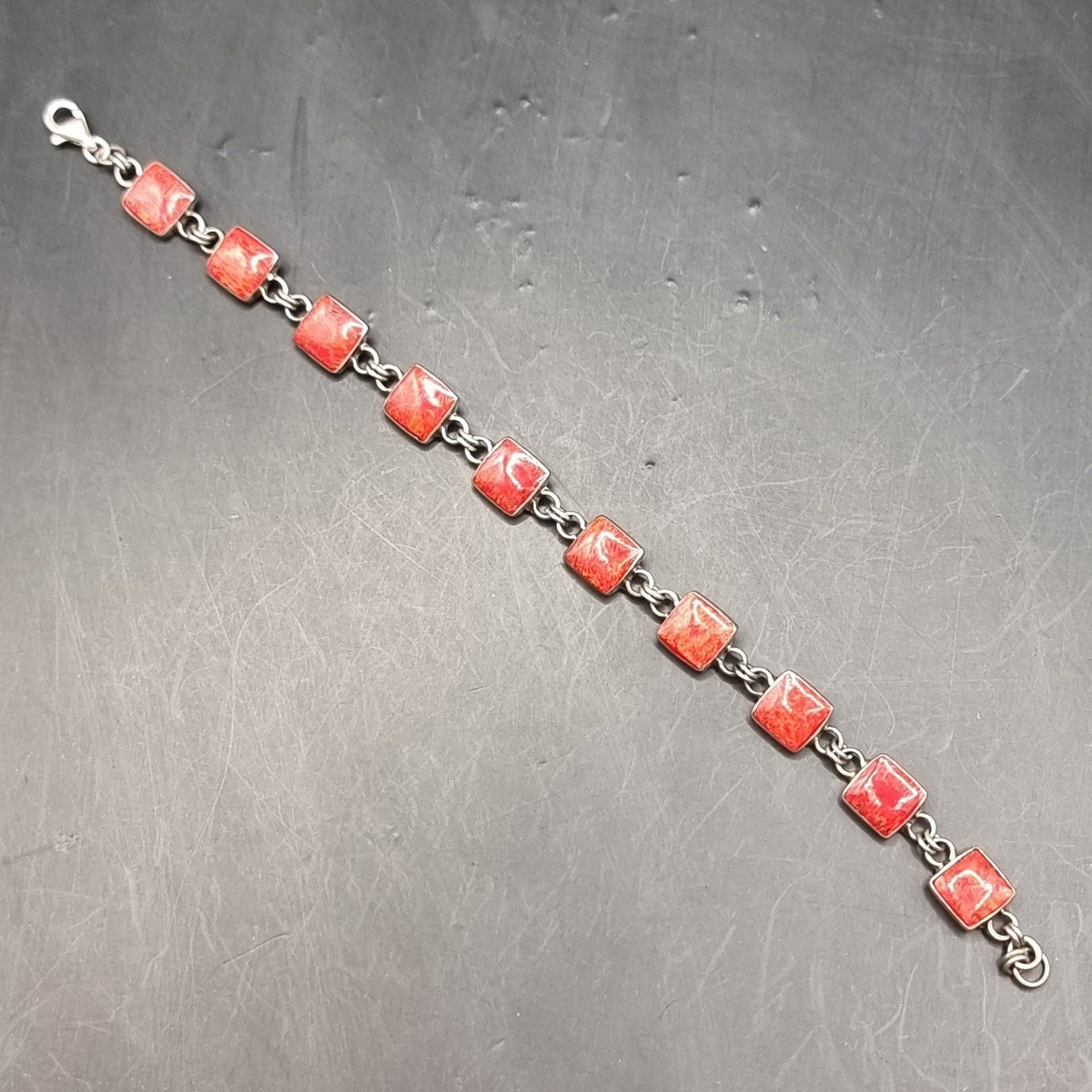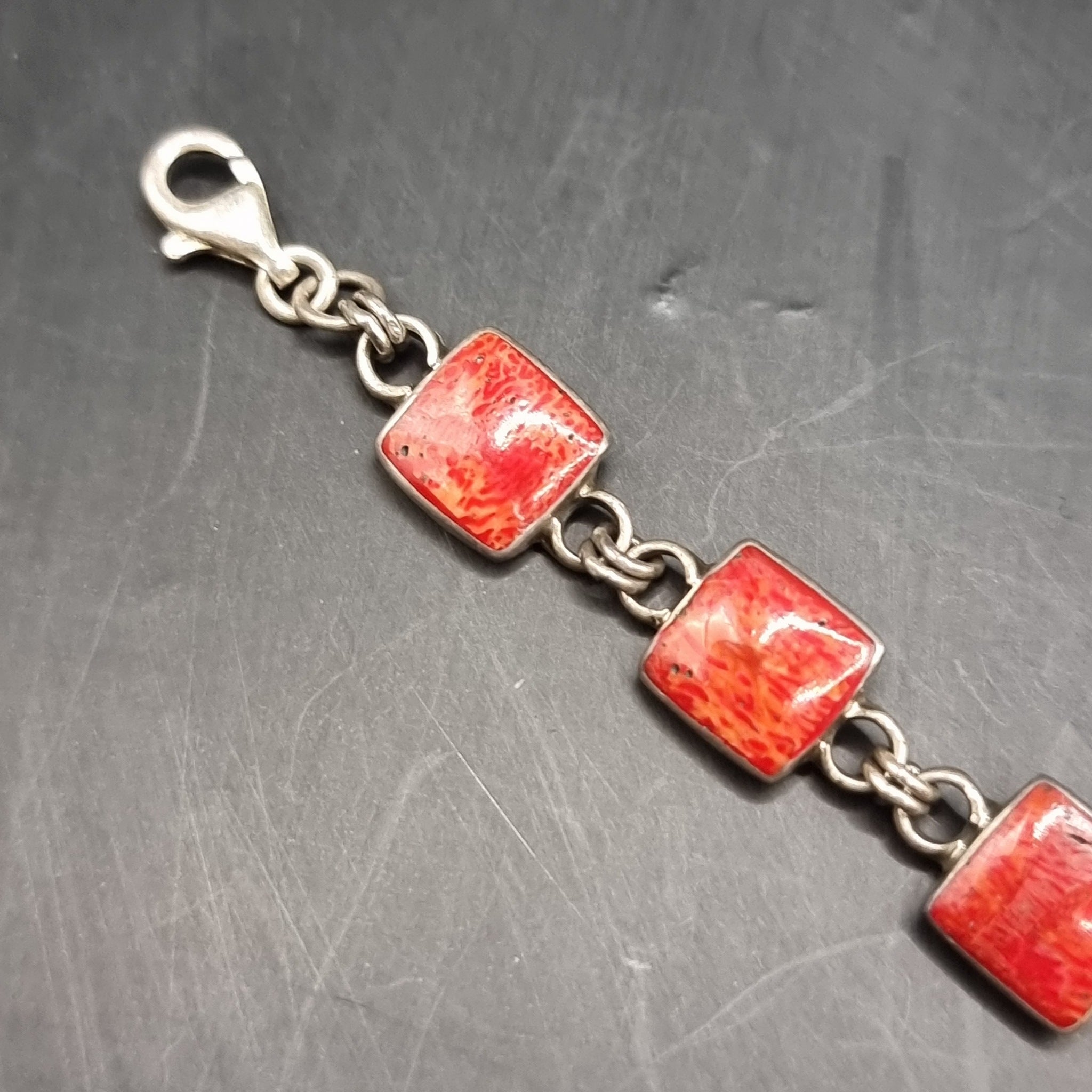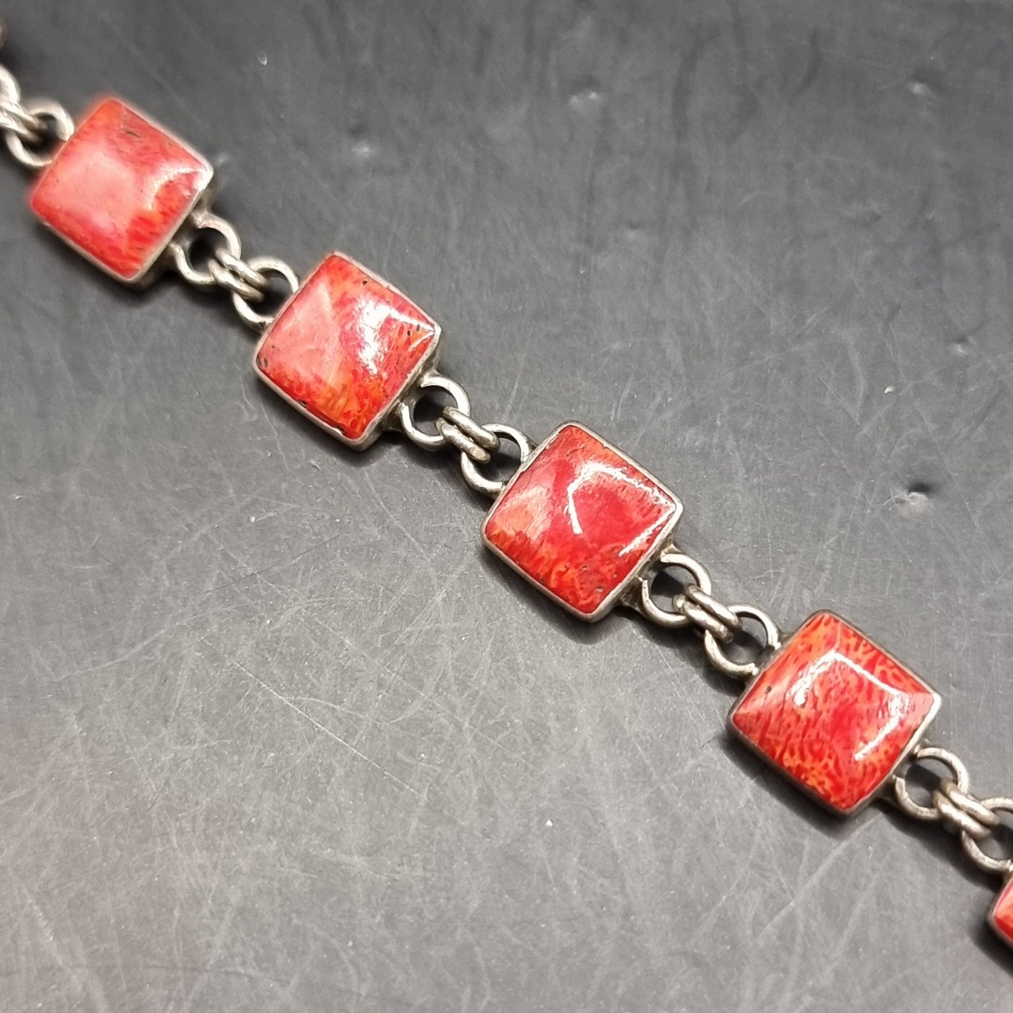 Thin silver chain. Measures: Length 20.6cm, Width 0.6cm. Love heart locket chain. Length 19cm, Width 1.1cm. Locket Measures: Height 2cm, Width 1.5cm. Red stone bracelet. Measures: Length 18.6cm, Width 0.8cm