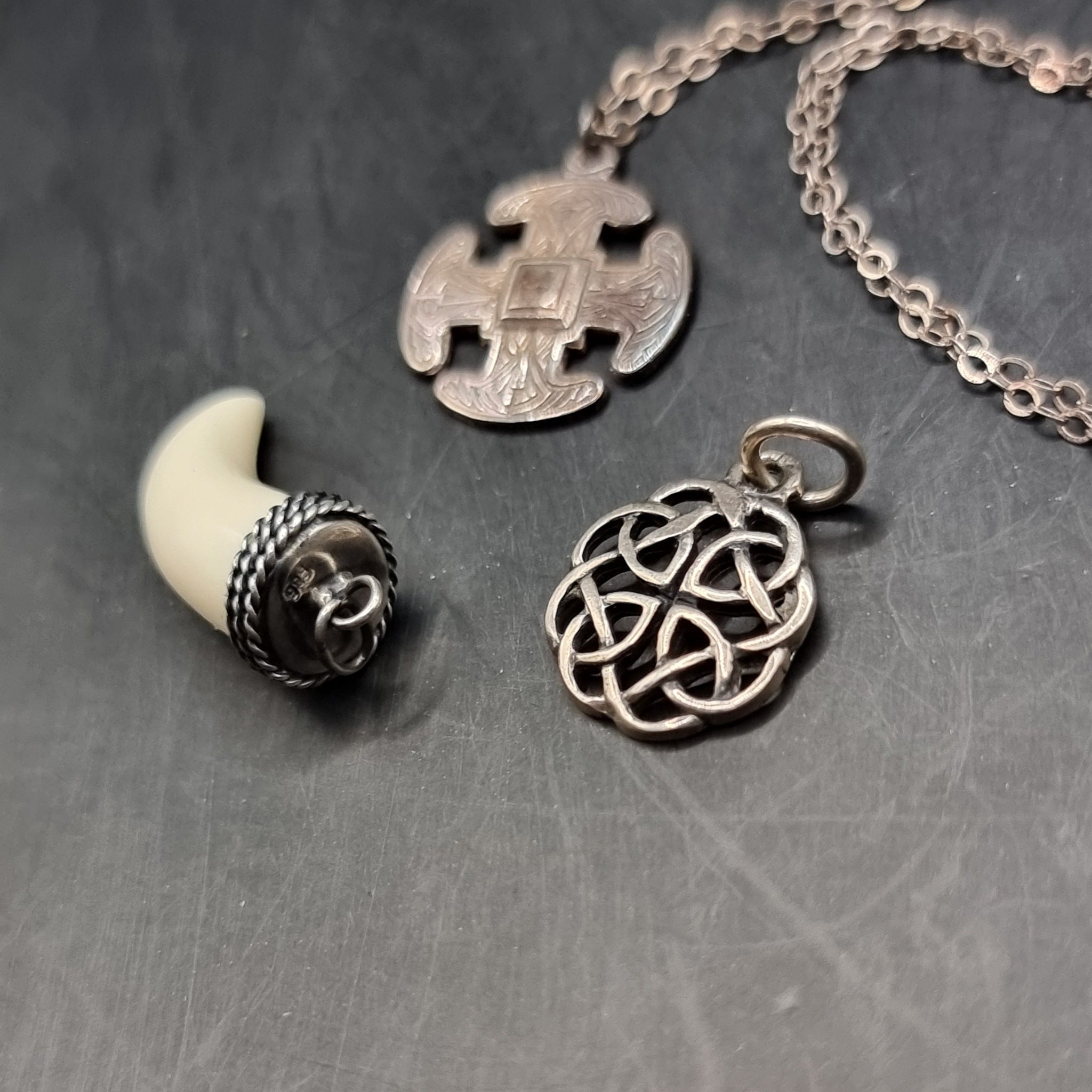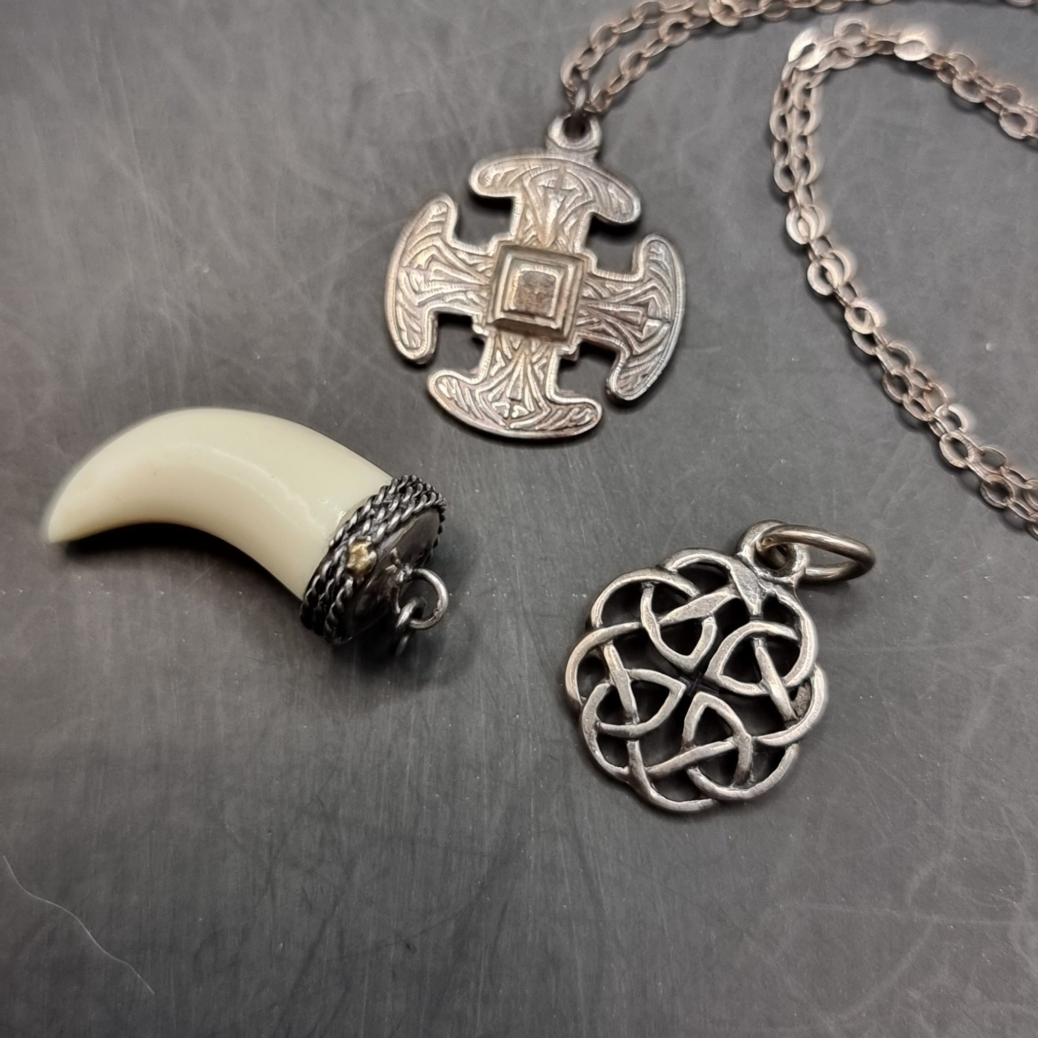 Three Silver Vintage Pendants. Two of Celtic Design, another Tooth Design