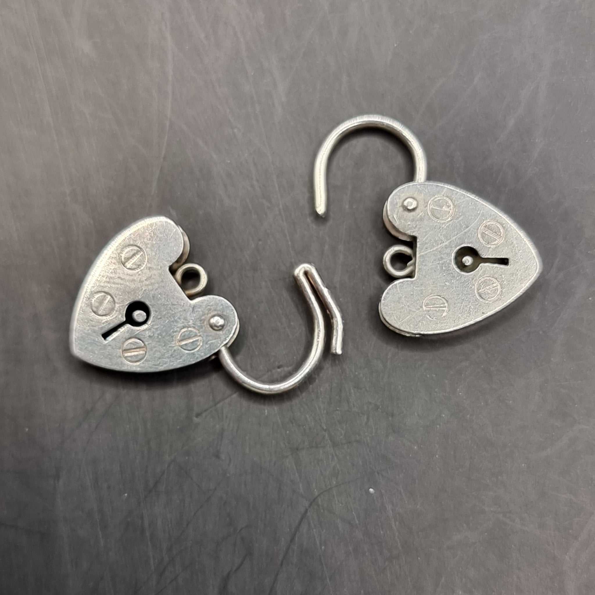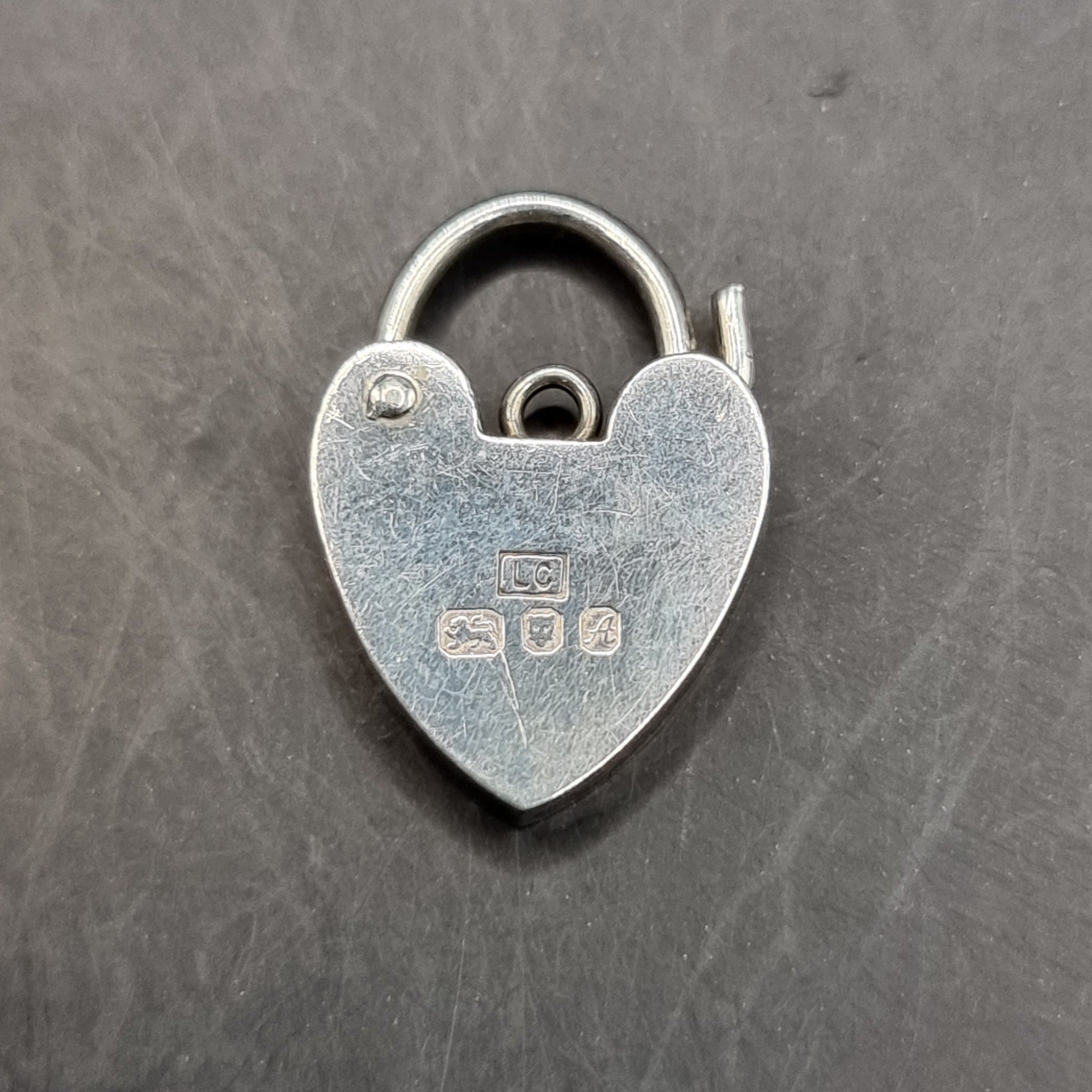 Two love heart padlock lockets one is broken. These are made in London by LC. Broken one date letter C is 1977. Other one date letter A is 1975.