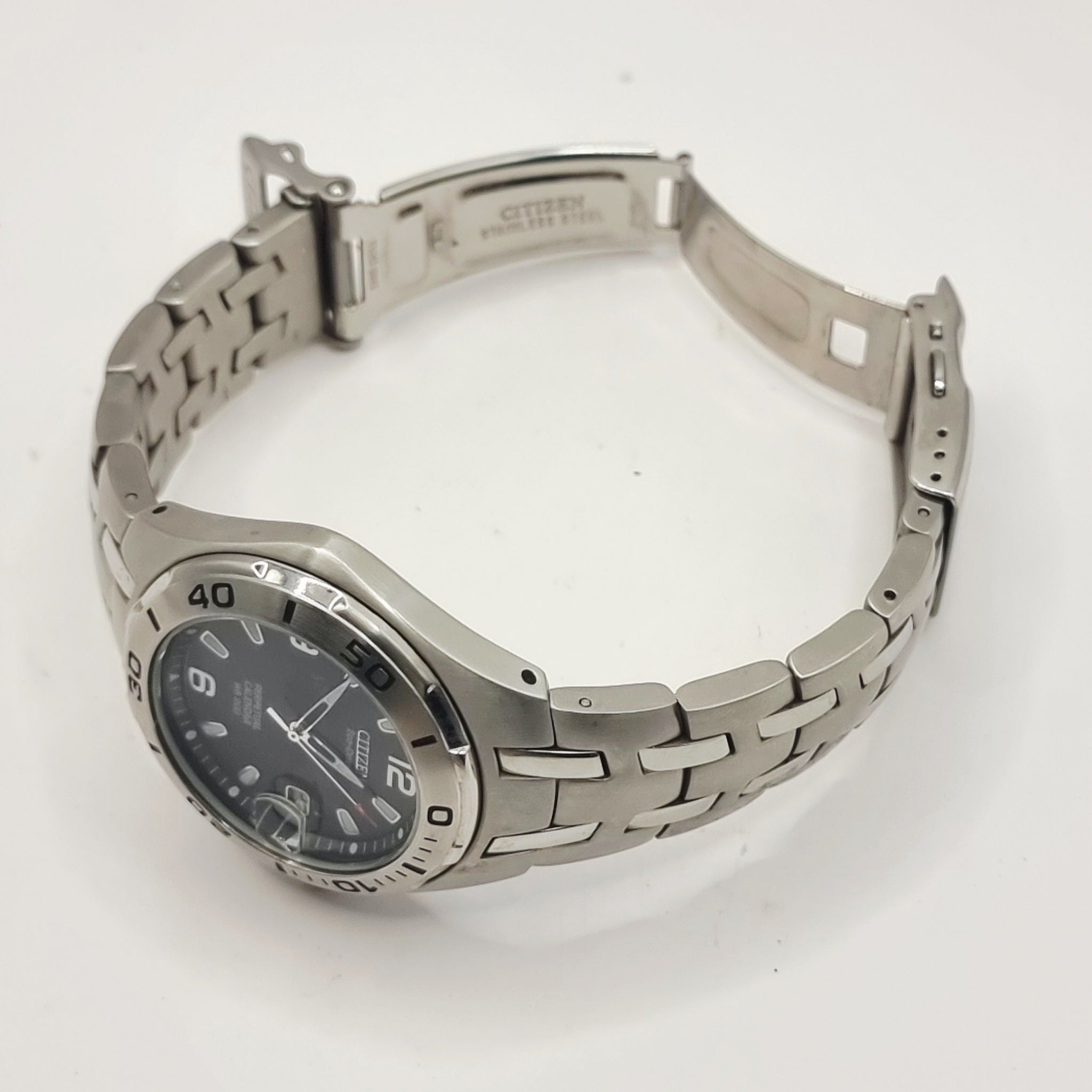 Citizen Eco-Drive perpetual calendar wr 200. Stainless steel. This is a lovely looking watch. Black Face Stainless steel watch and bezel. In good condition.