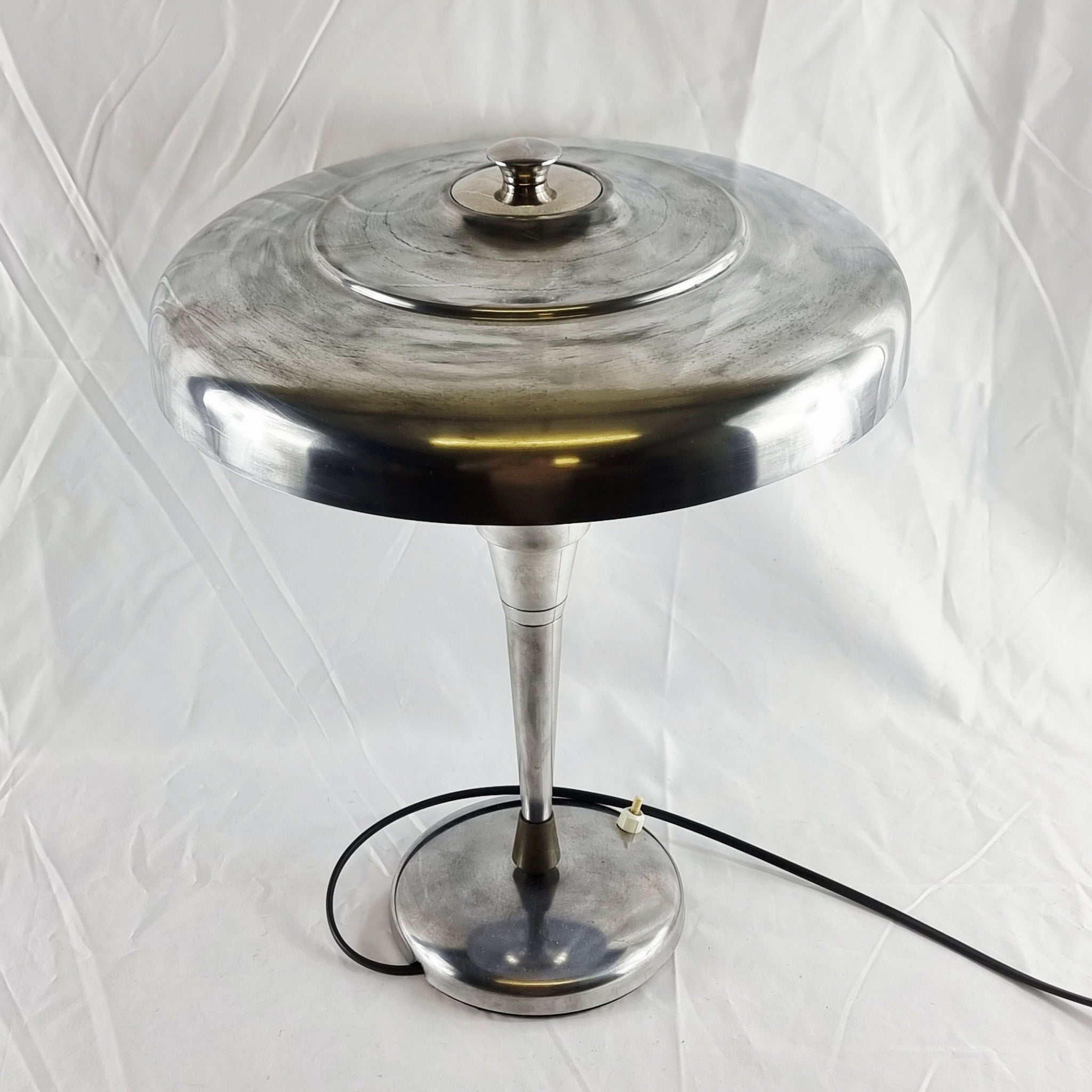 Vintage Italian Polished Aluminium and Chrome 1930s Art Deco Lamp