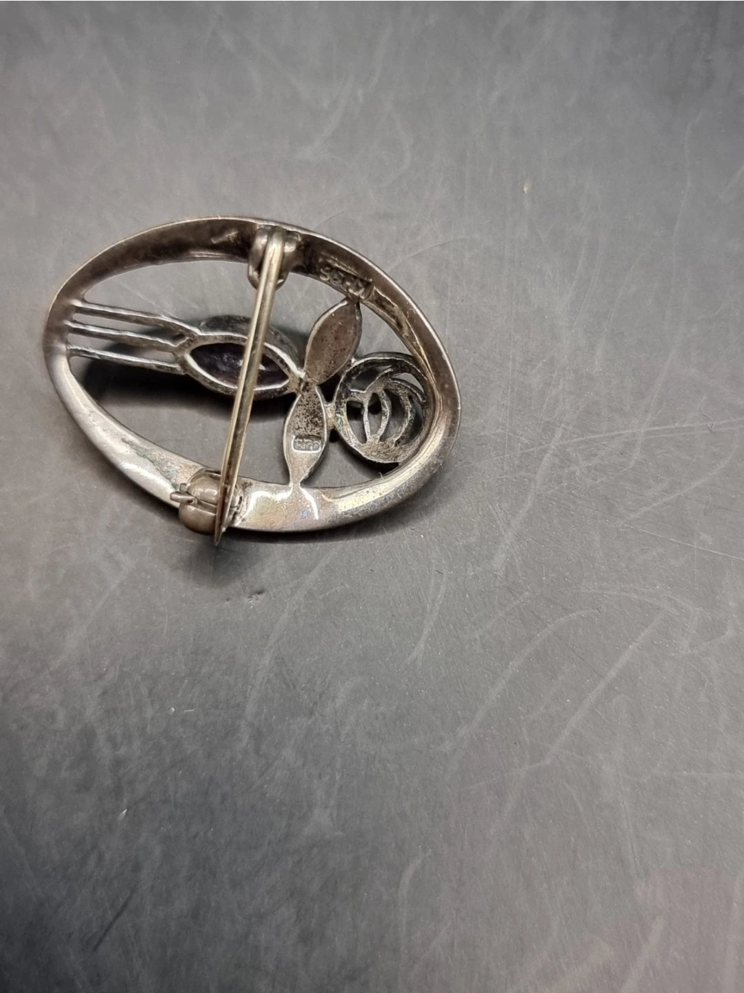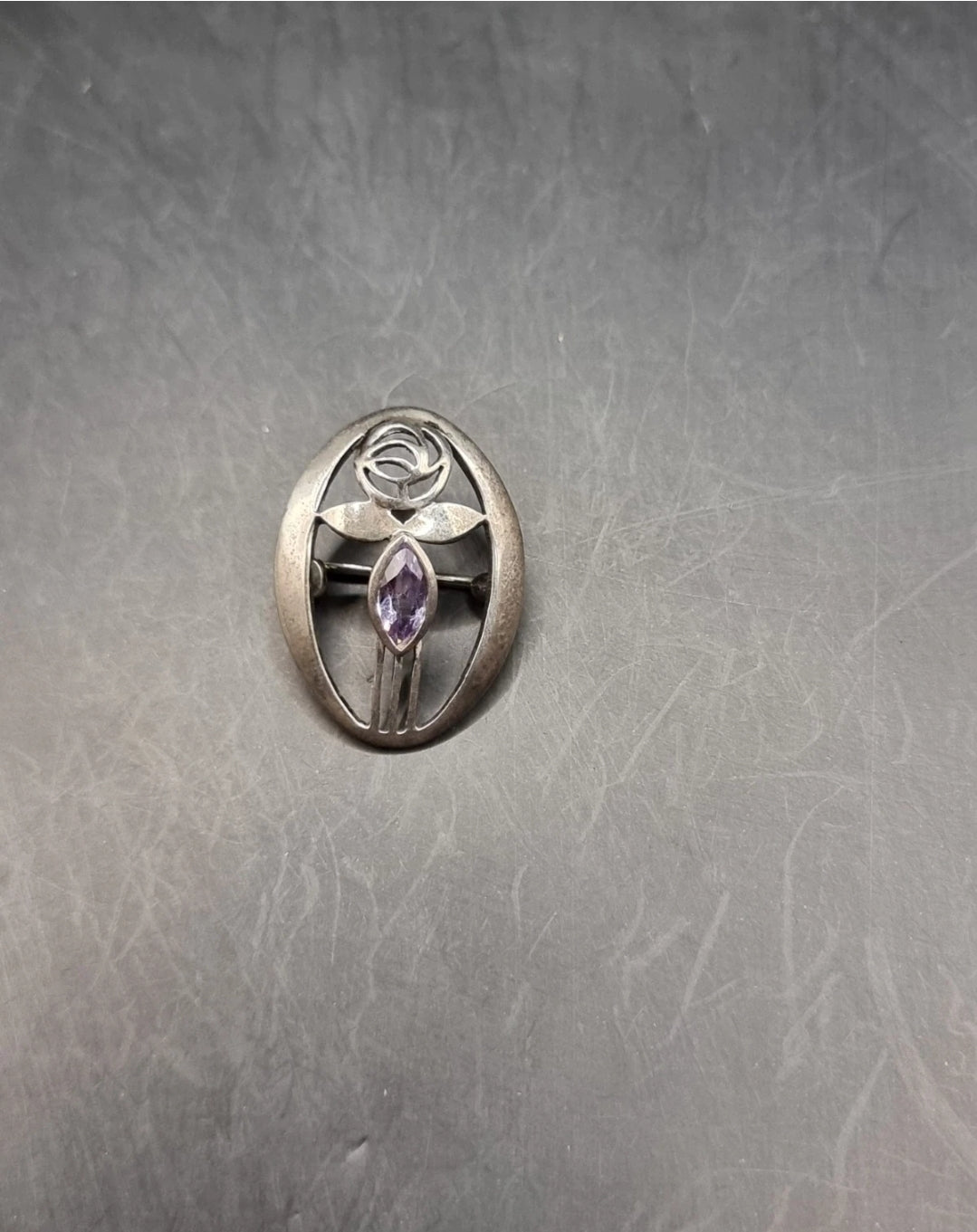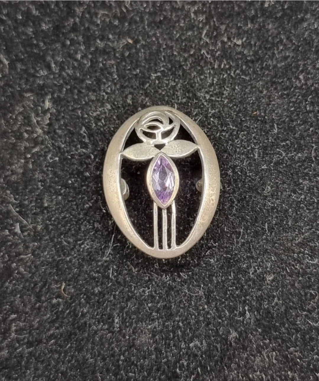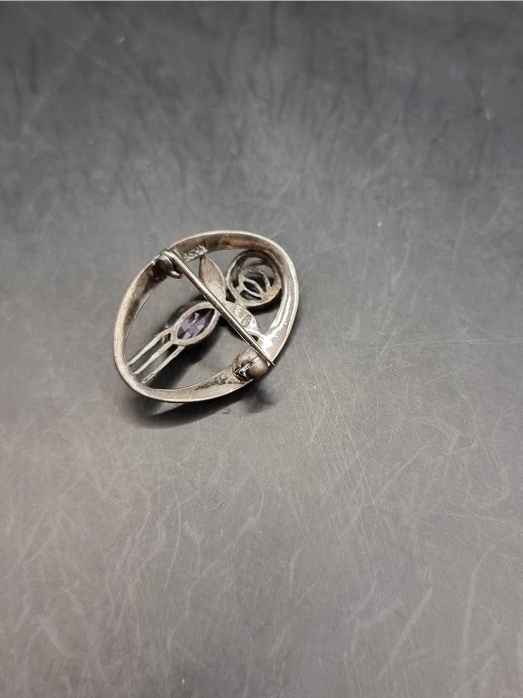 Vintage Kit Heath Amethyst 925 Silver Art Nouveau Brooch