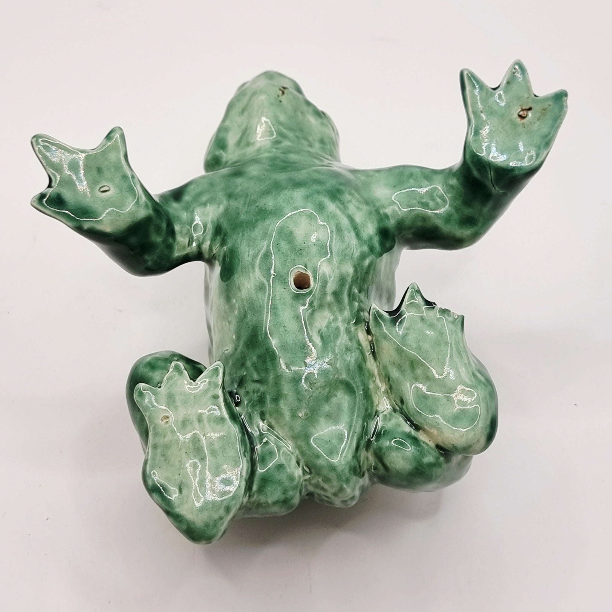 Vintage Studio pottery toad. This is a wonderful made toad with great detail to the eyes and back. Solid pottery figure. With only a toe missing. This is in good condition.
